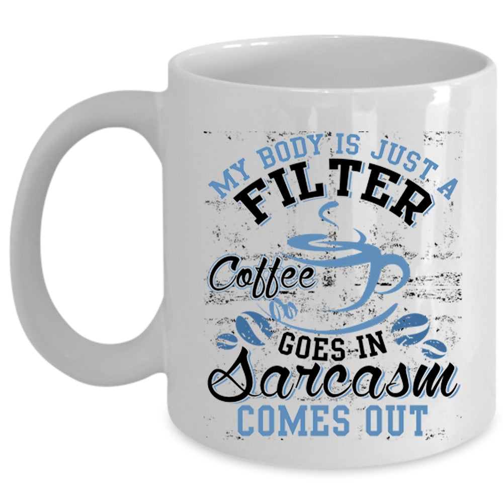 Funny Saying Coffee Mug, My Body Is Just A Filter Coffee Cup