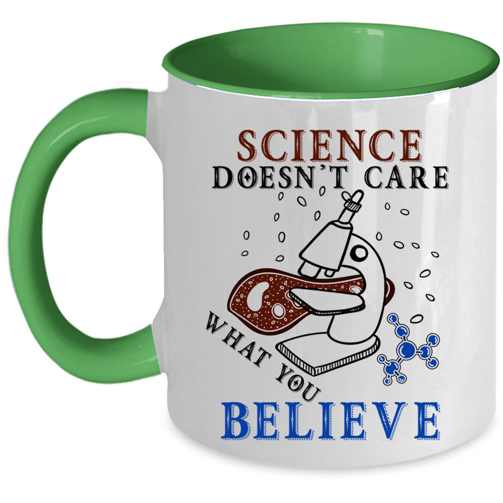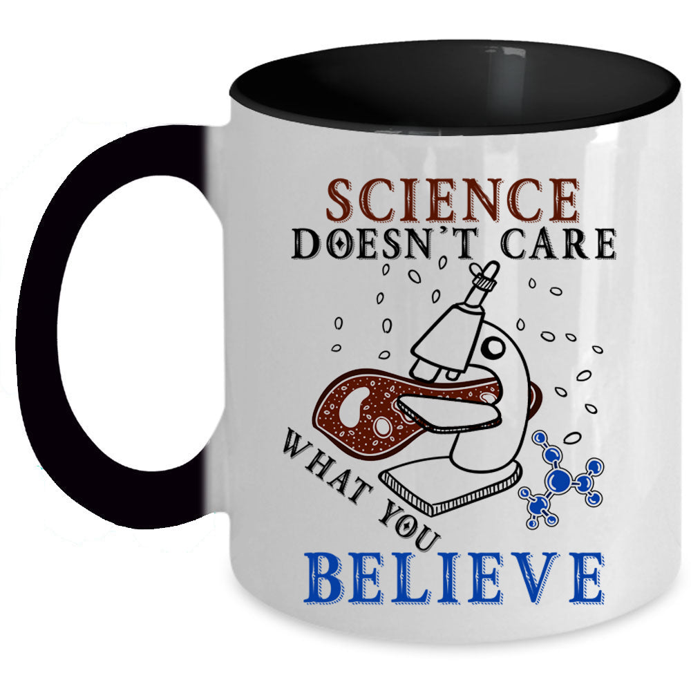 Funny Scientist Coffee Mug, Science Doesn't Care What You Believe Accent Mug