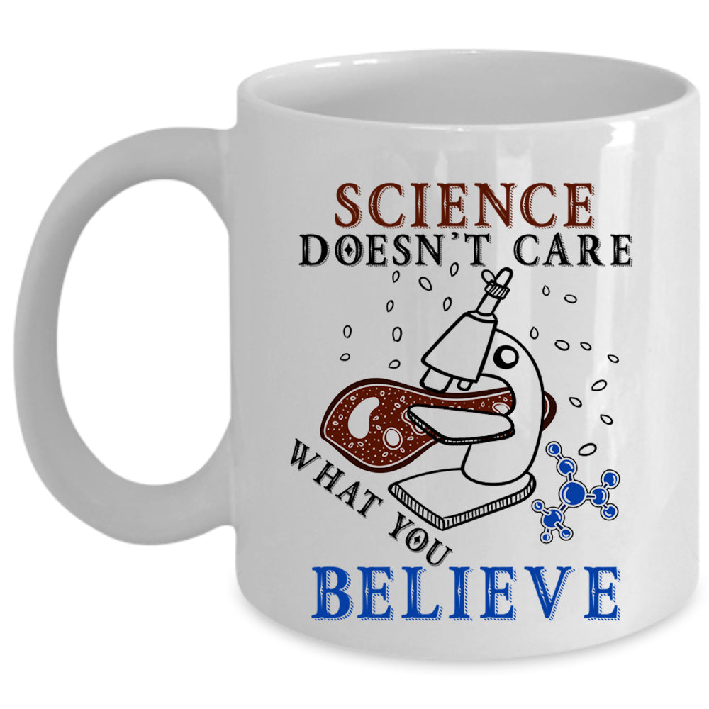 Funny Scientist Coffee Mug, Science Doesn't Care What You Believe Cup