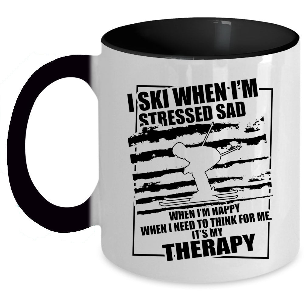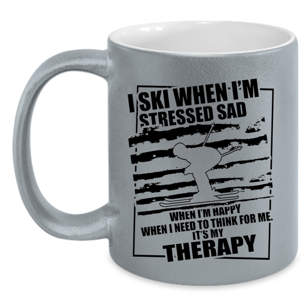 Funny Skiing Coffee Mug, I Ski When I'm Stressed Sad Accent Mug