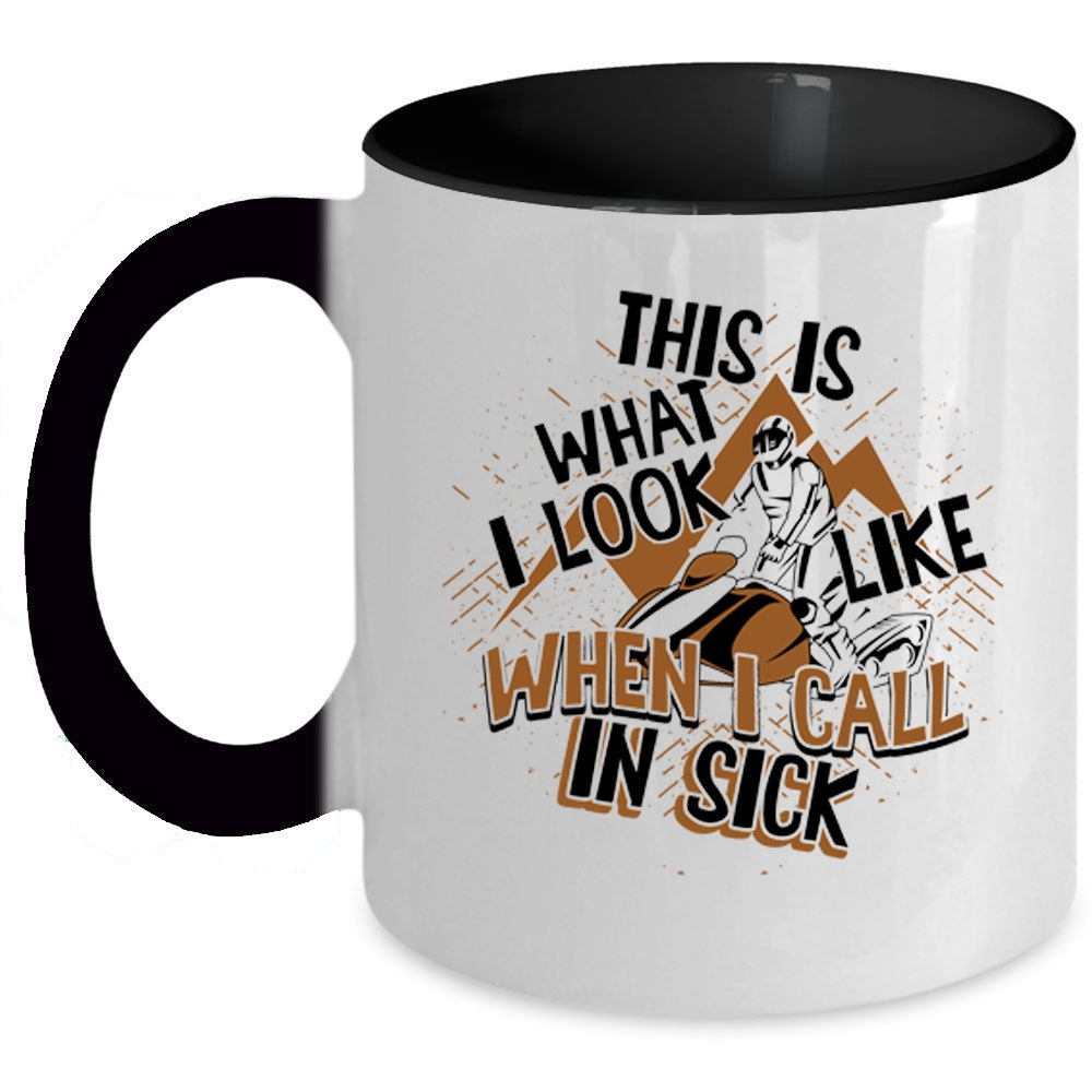 Funny Skiing Coffee Mug, This Is What I Look Like When I Call In Sick Accent Mug