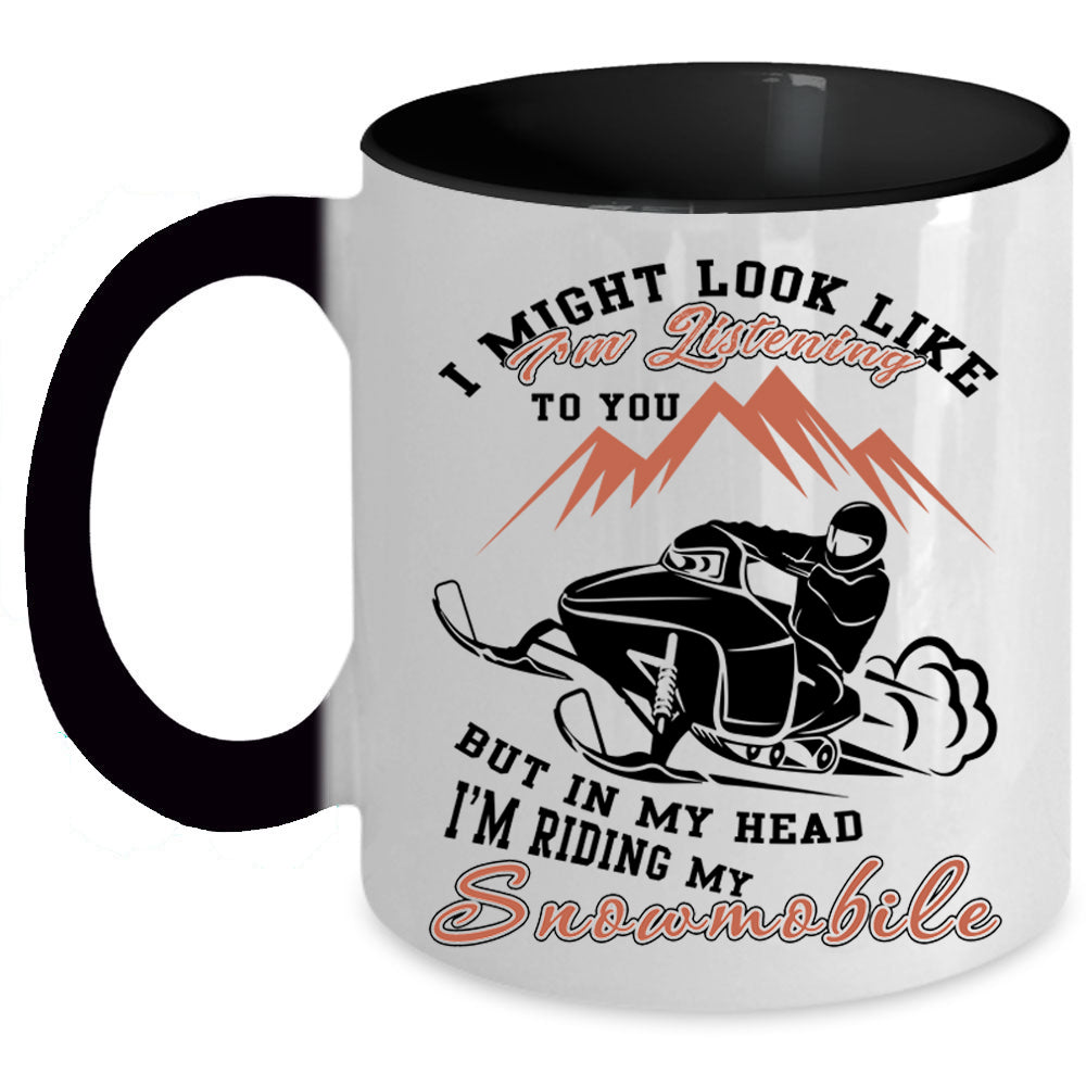 Funny Snowmobile Coffee Mug, In My Head I'm Riding My Snowmobile Accent Mug