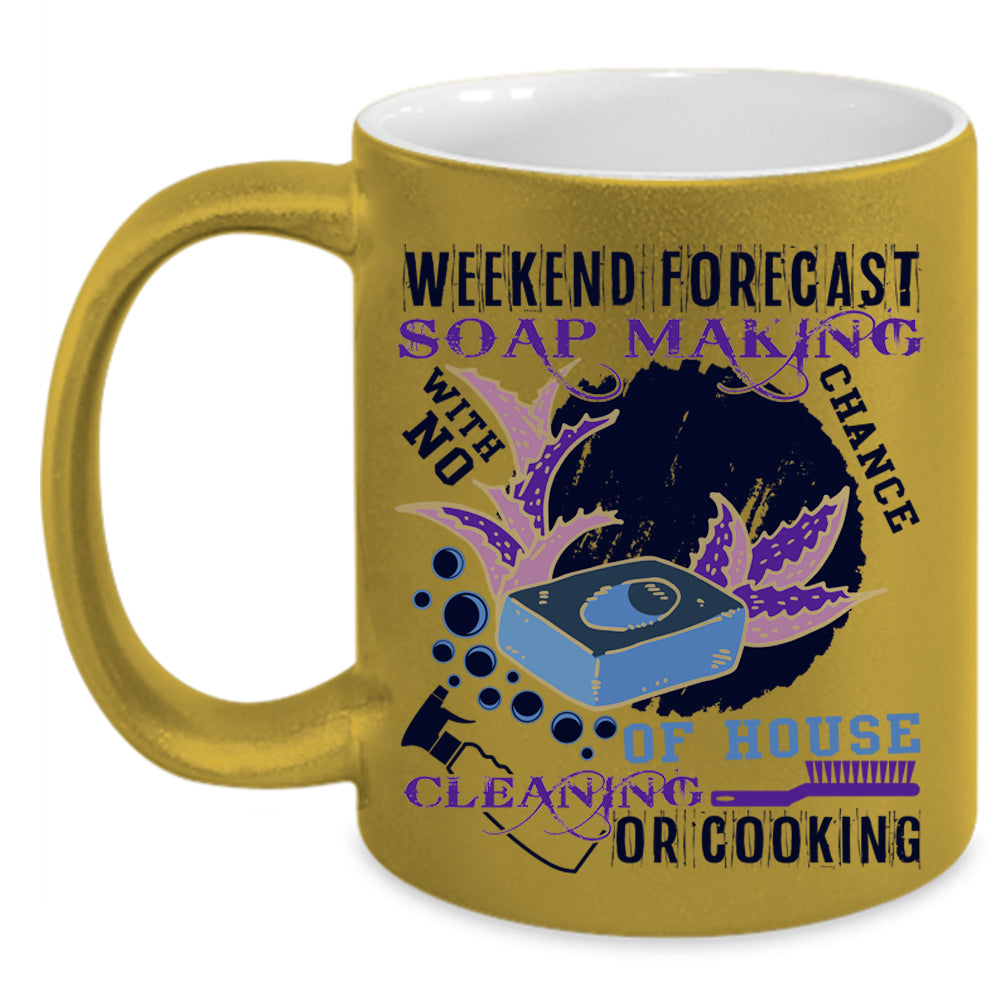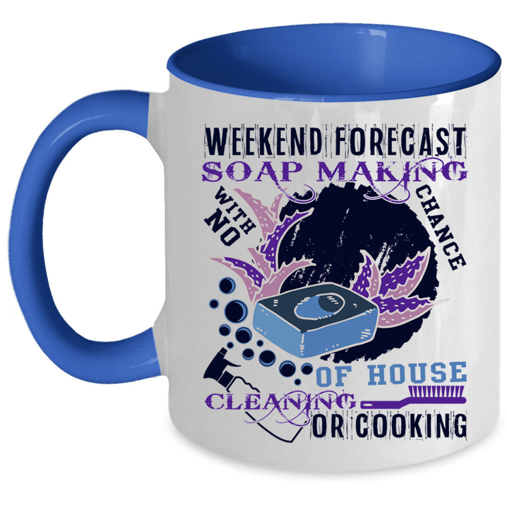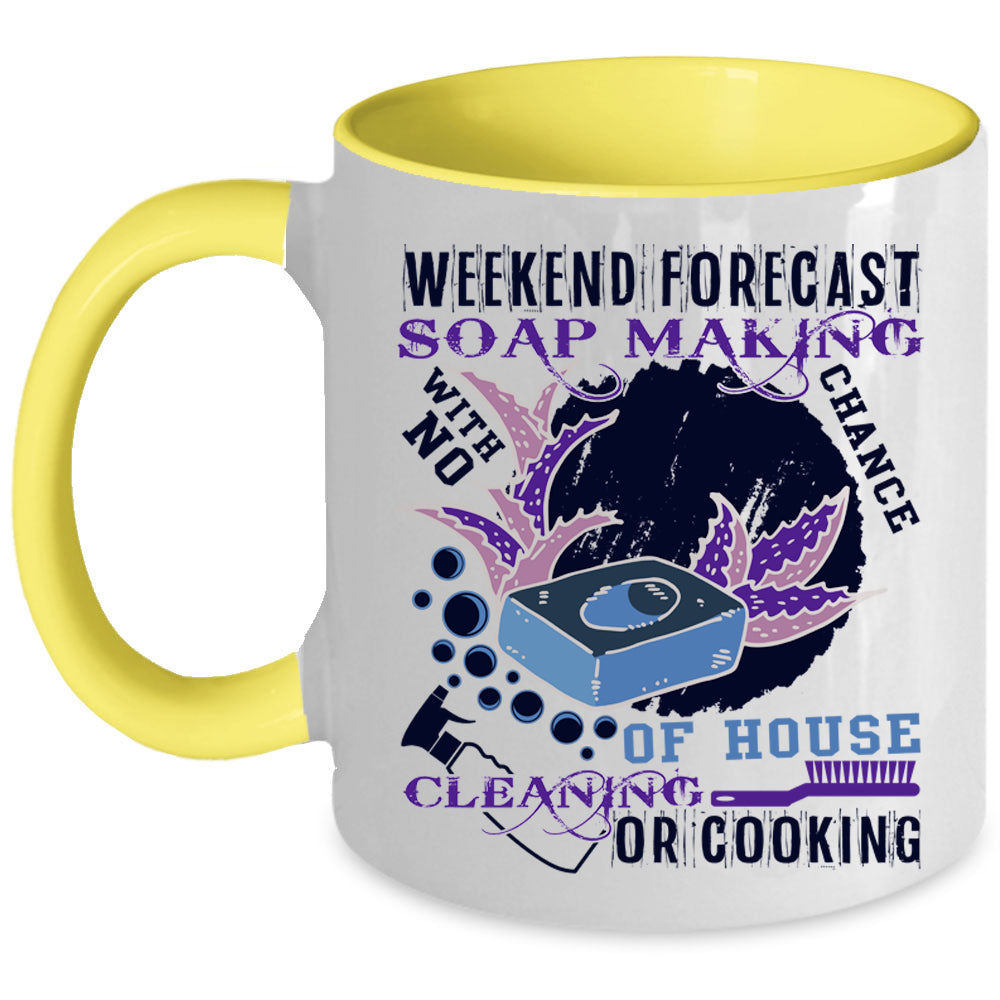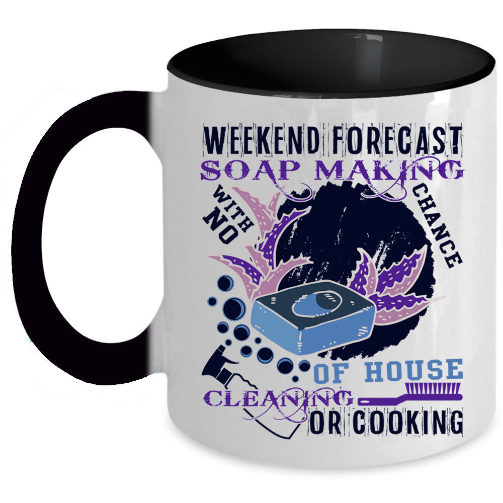 Funny Soap Making Coffee Mug, Weekend Forecast Soap Making Accent Mug