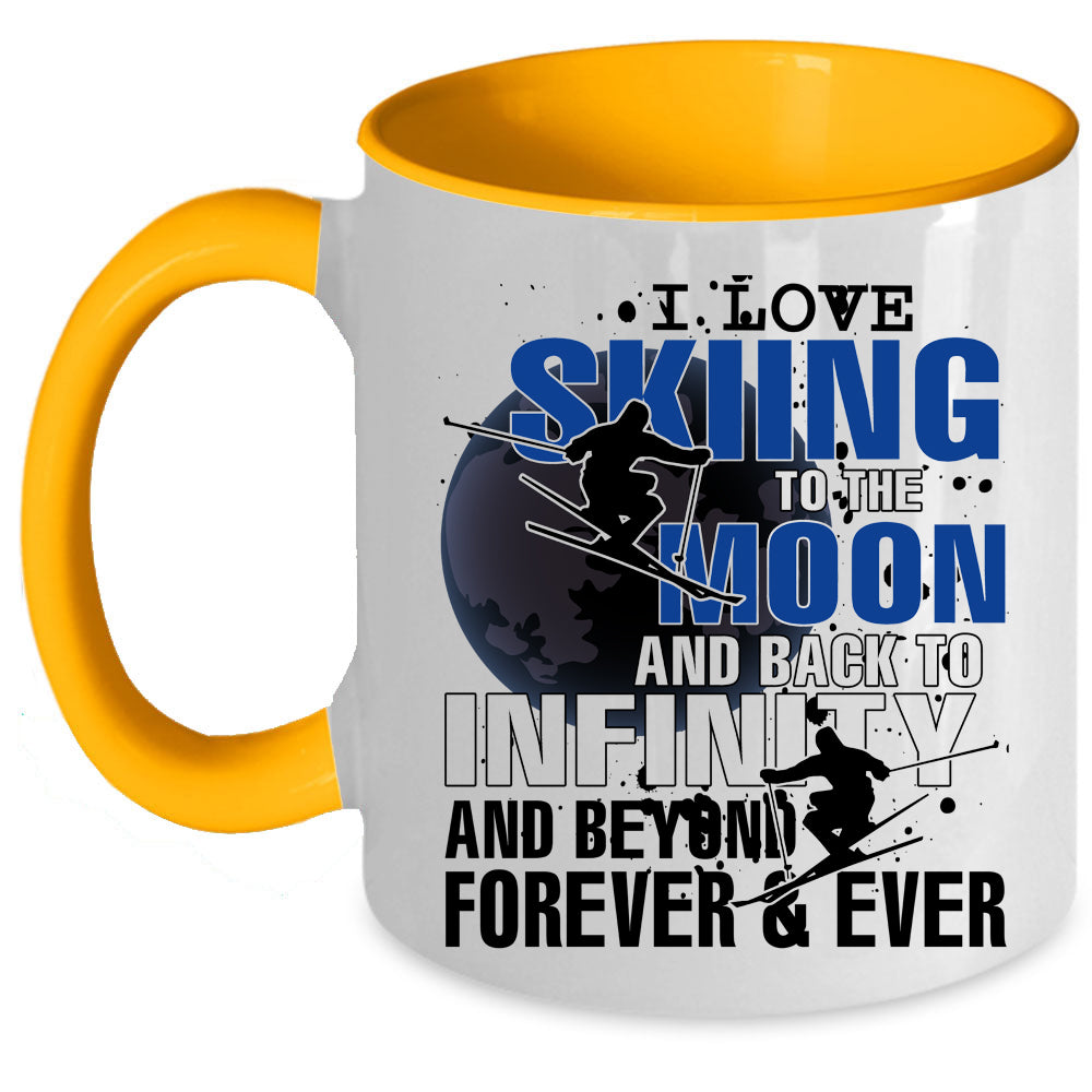 Funny Sport Coffee Mug, I Love Skiing To The Moon And Back Accent Mug