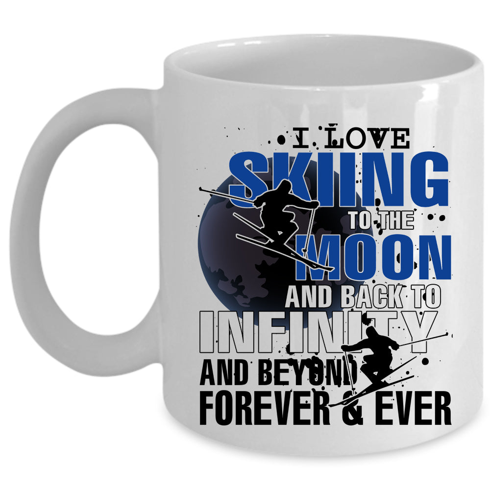Funny Sport Coffee Mug, I Love Skiing To The Moon And Back Cup