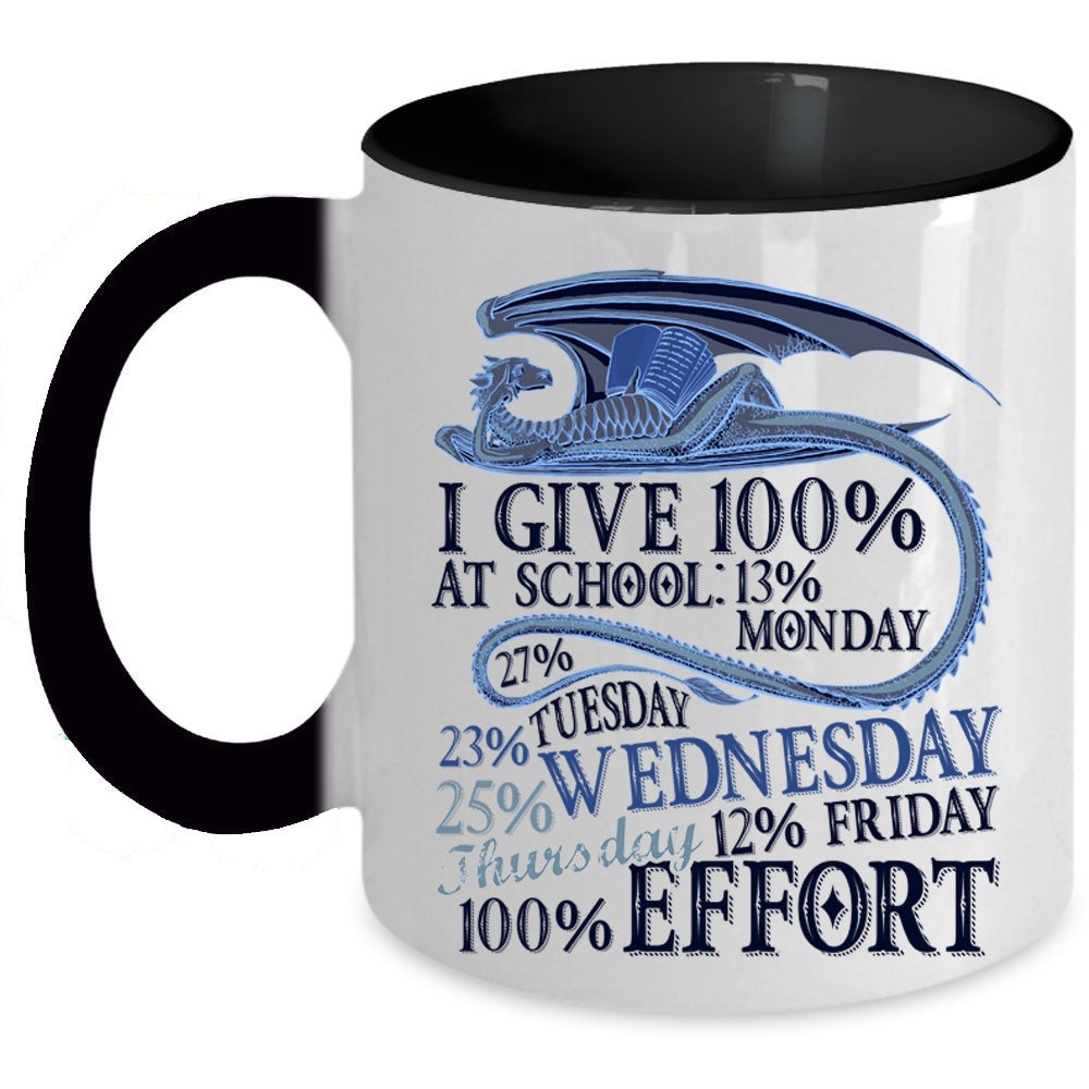 Funny Student Coffee Mug, I Give 100% At School Accent Mug