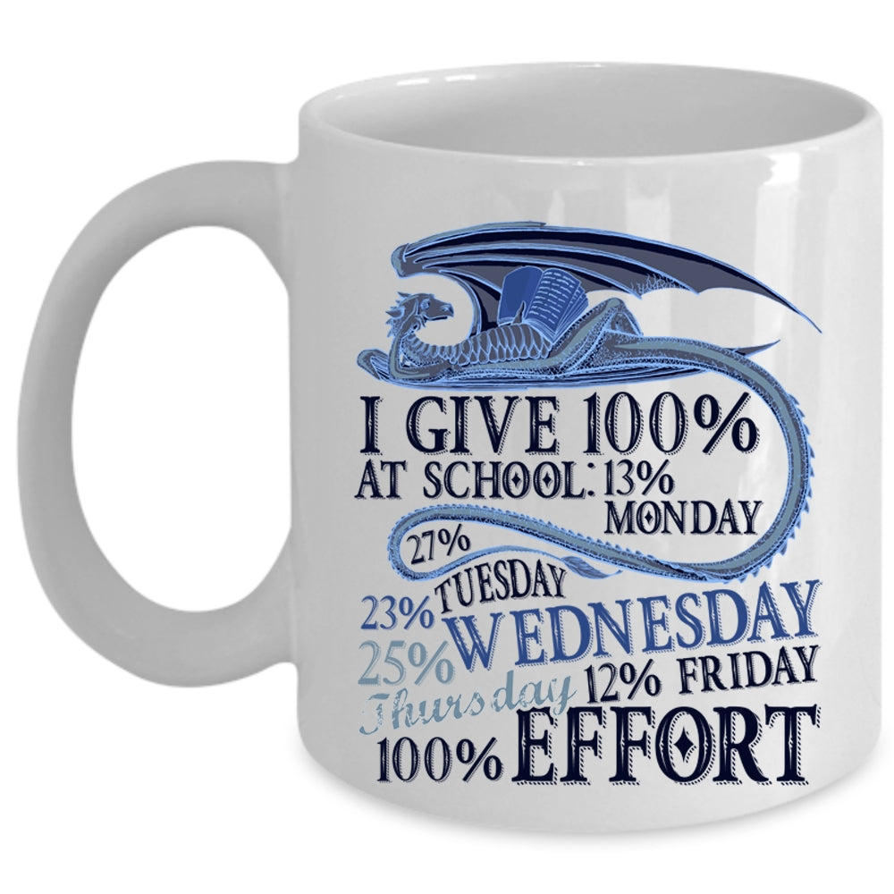 Funny Student Coffee Mug, I Give 100% At School Cup
