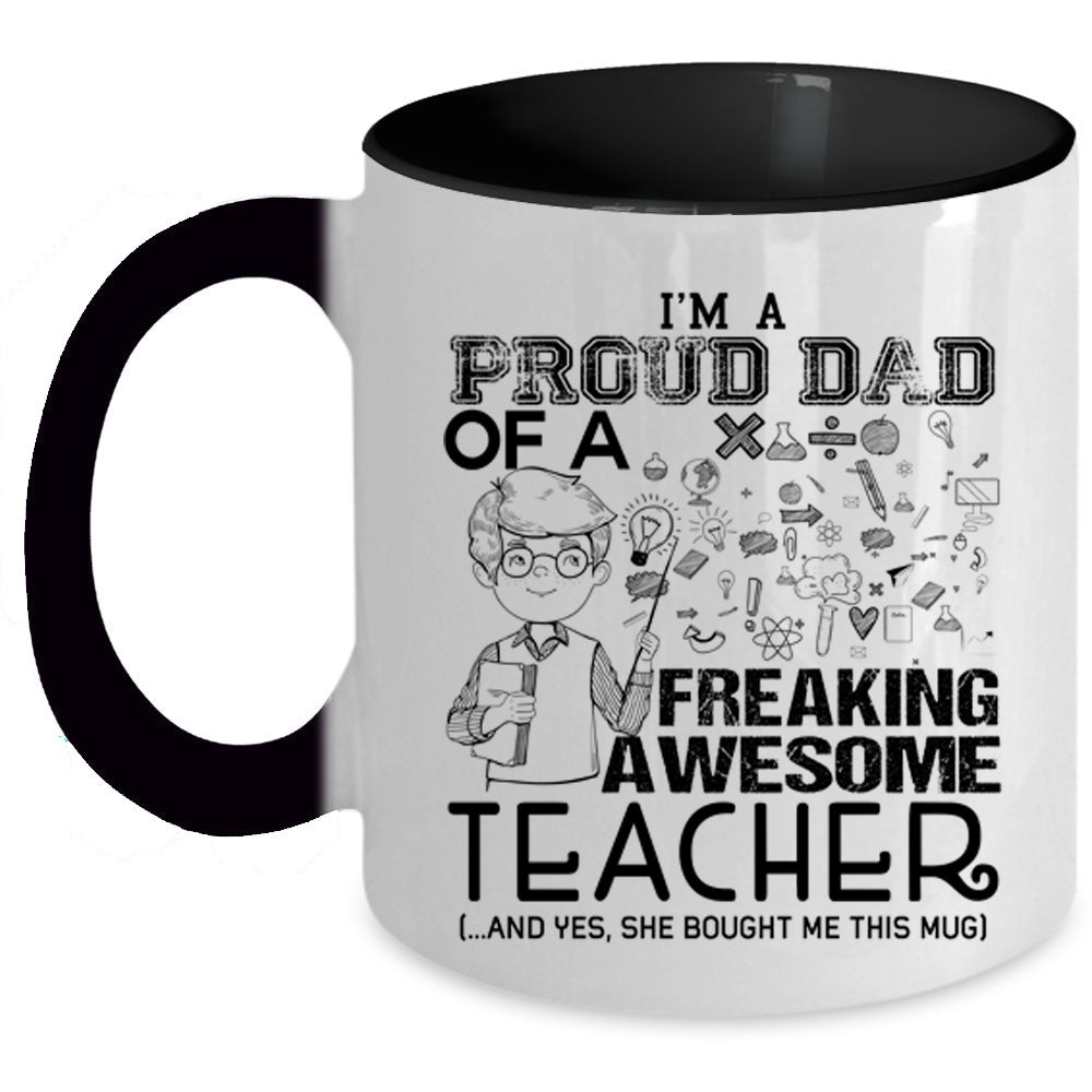 Funny Teacher Coffee Mug, I'm A Proud Dad Of An Awesome Teacher Accent Mug