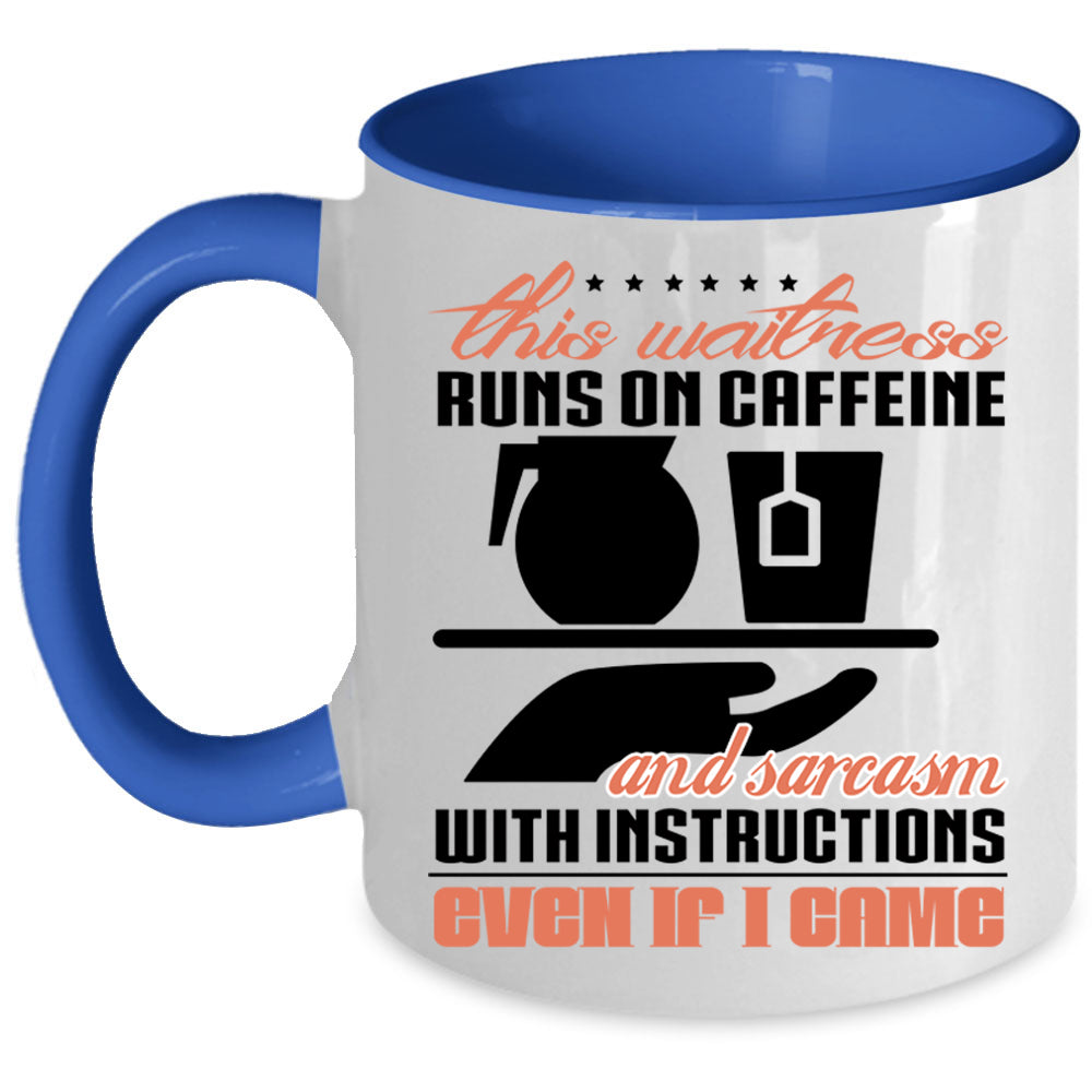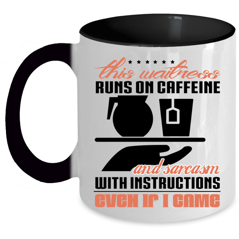Funny Waitress Coffee Mug, This Waitress Runs On Caffeine Accent Mug