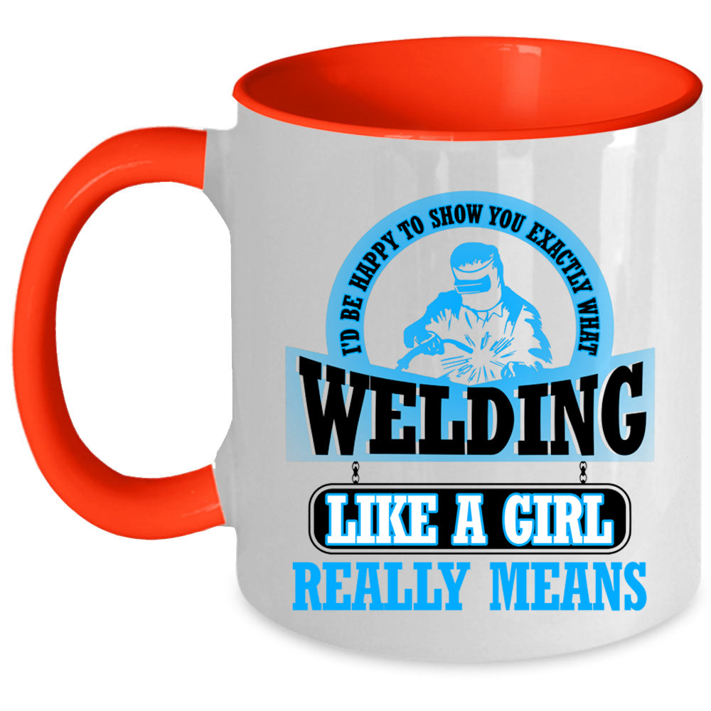 Funny Welding Coffee Mug, Welding Like A Girl Accent Mug
