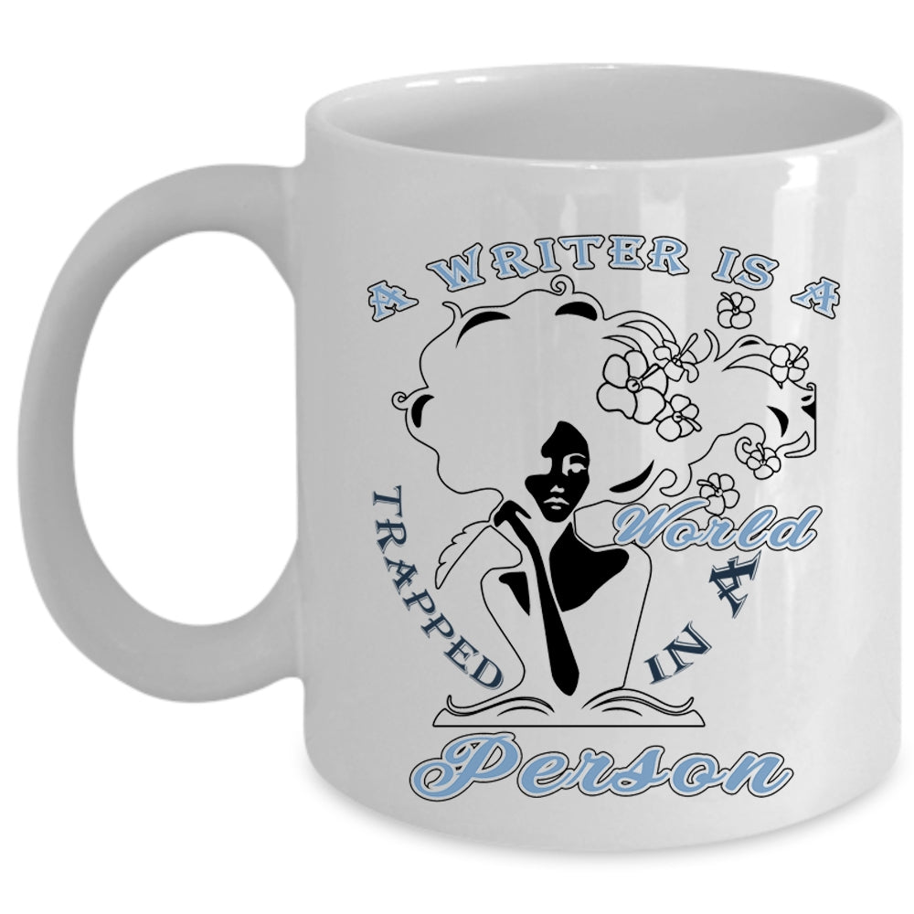 Funny Writer Coffee Mug, A Writer Is A World Trapped In A Person Cup