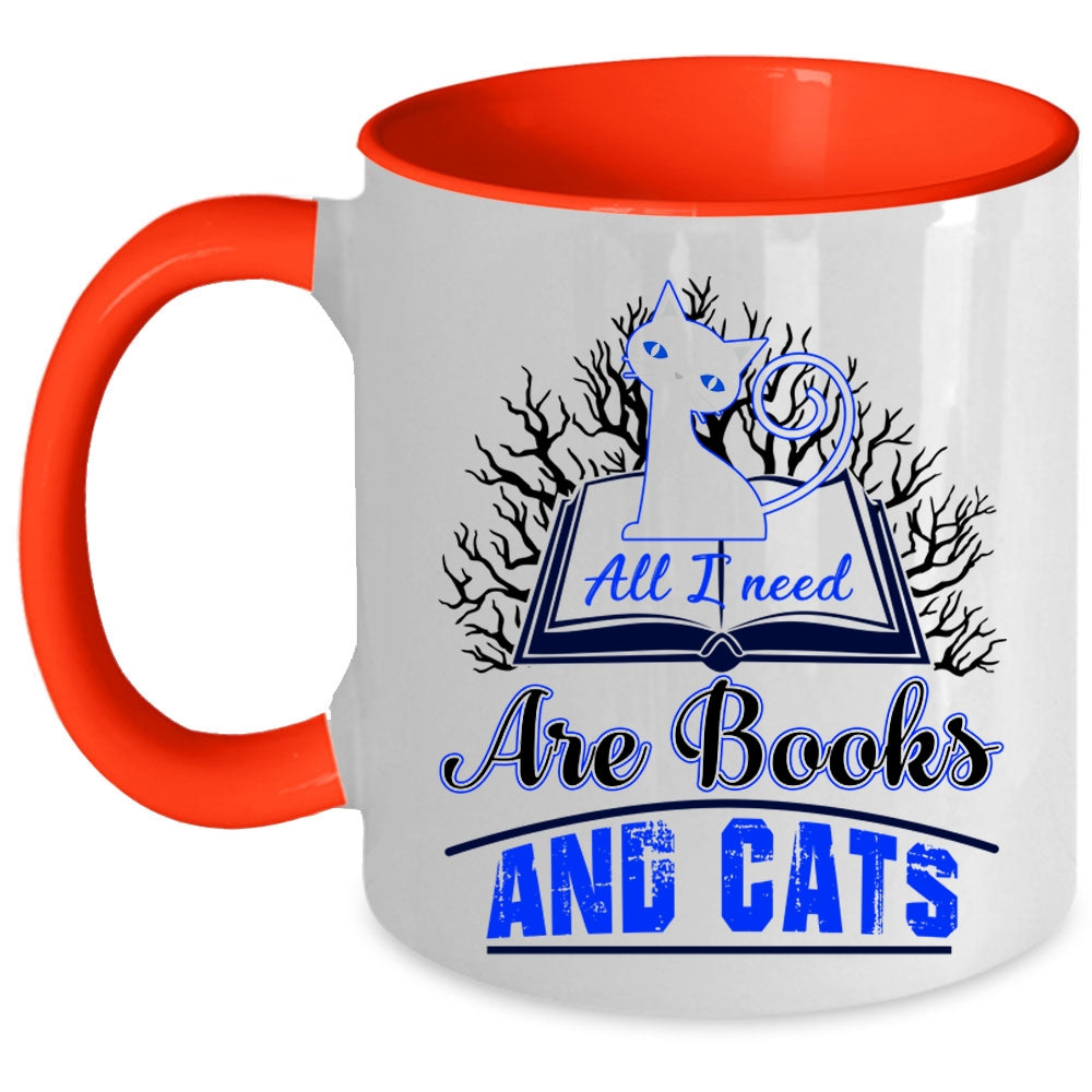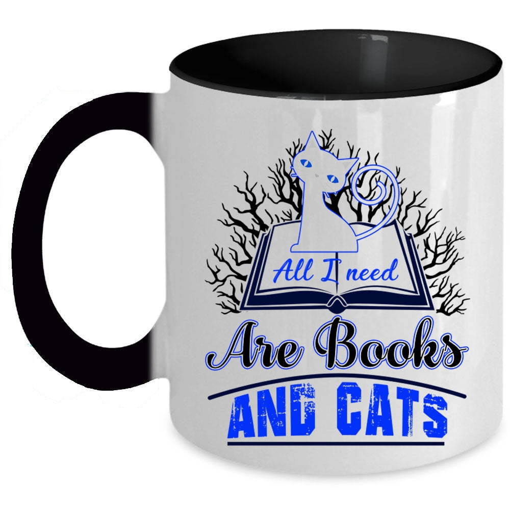 Gift For Book Reader Coffee Mug, All I Need Are Books And Cats Accent Mug