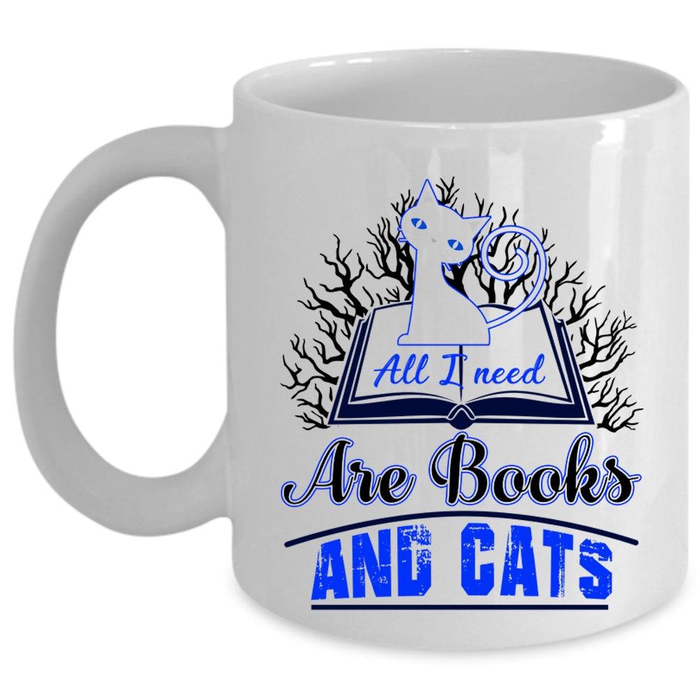 Gift For Book Reader Coffee Mug, All I Need Are Books And Cats Cup