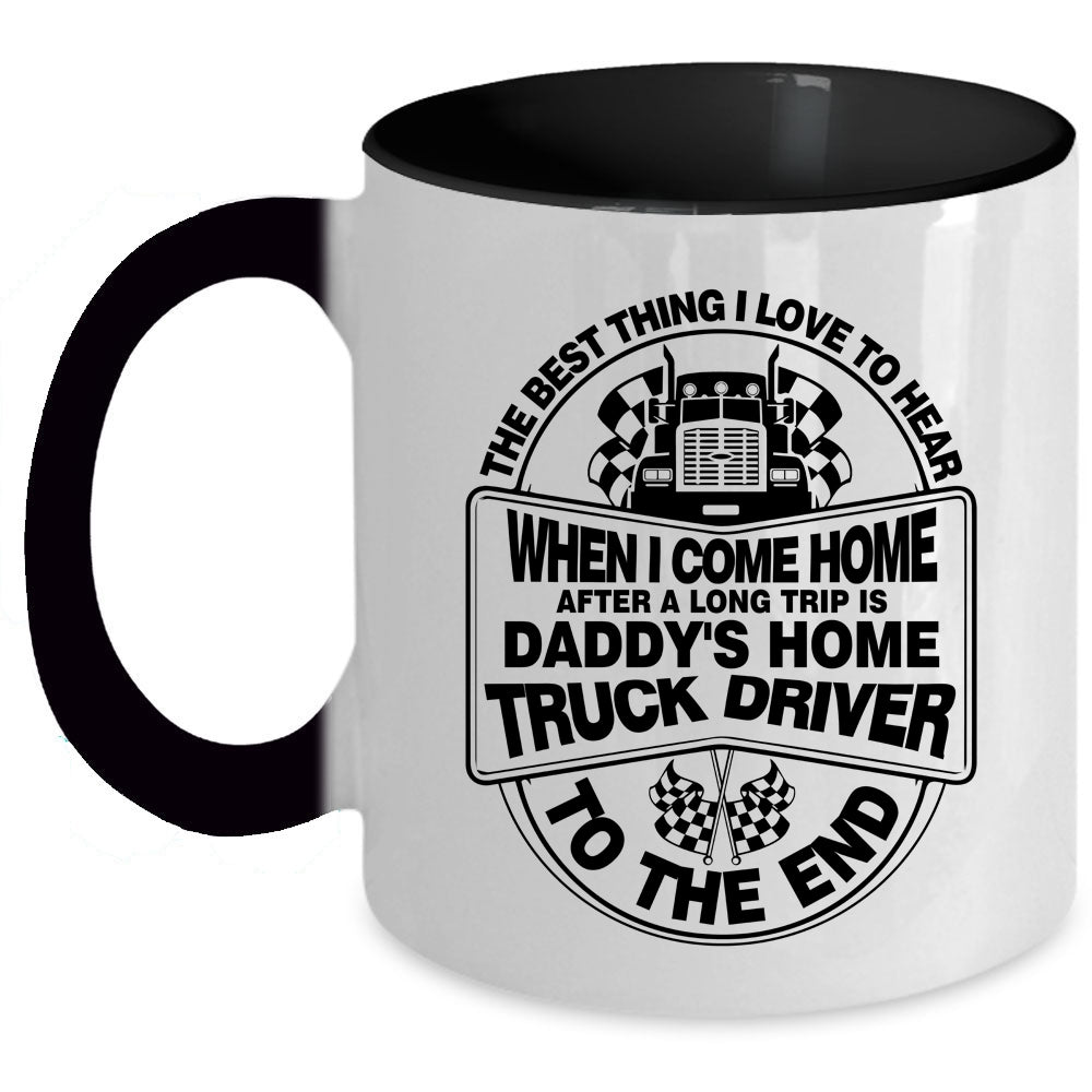 Gift For Daddy Coffee Mug, Daddy's Home Truck Driver Accent Mug