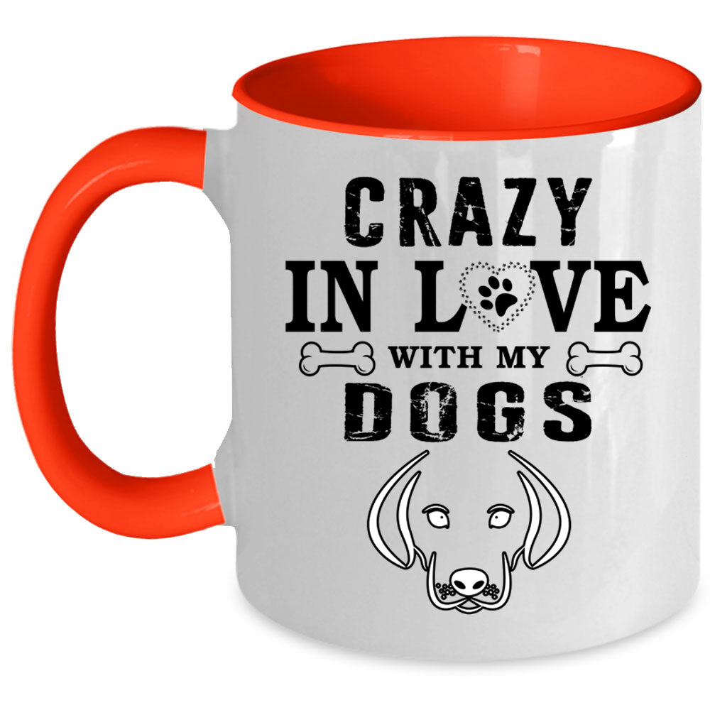 Gift For Dog Lovers Coffee Mug, Crazy In Love With My Dogs Accent Mug