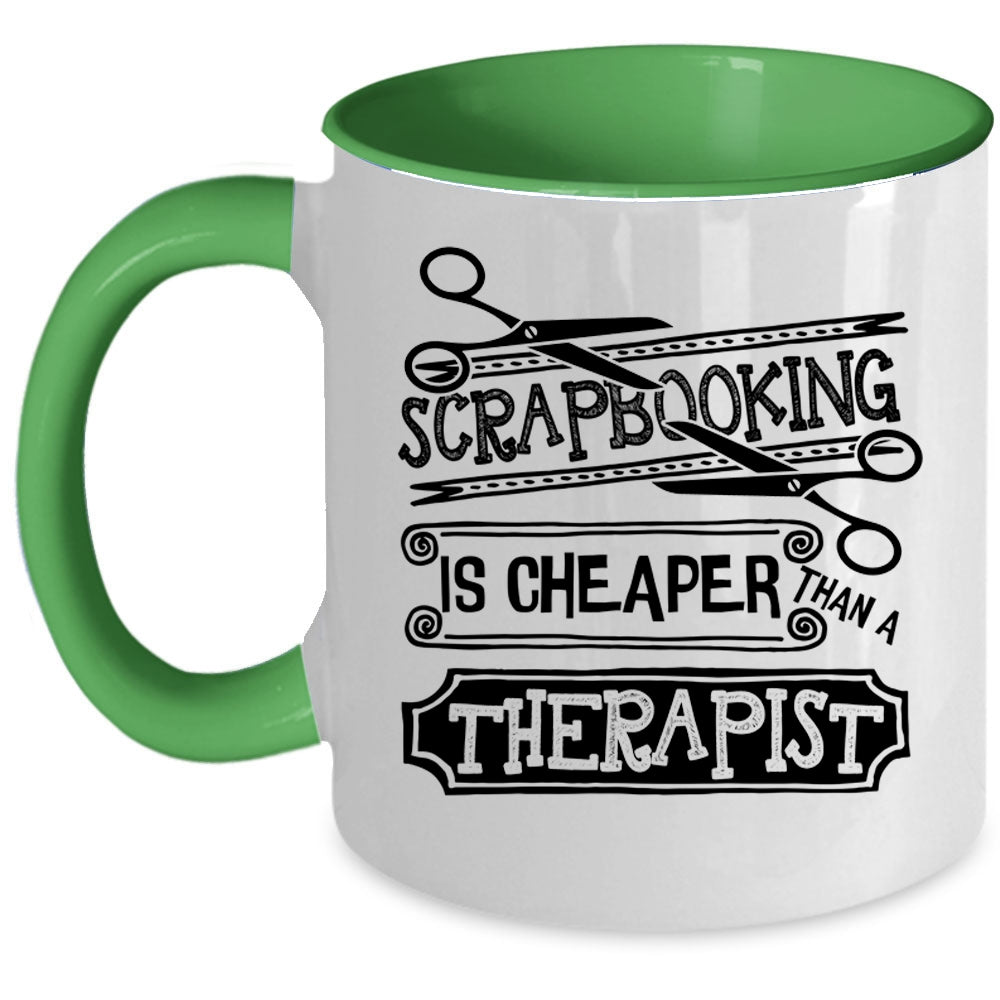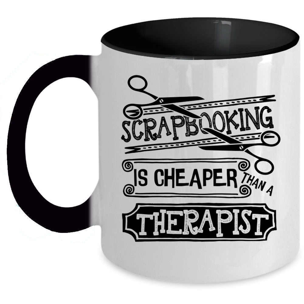 Gift For Friends Coffee Mug, Scapbooking Is Cheaper Than A Therapist Accent Mug