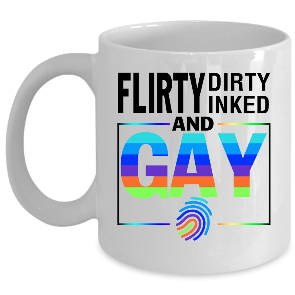 Gift For Gay Coffee Mug, Flirty Dirty Inked And Gay Cup