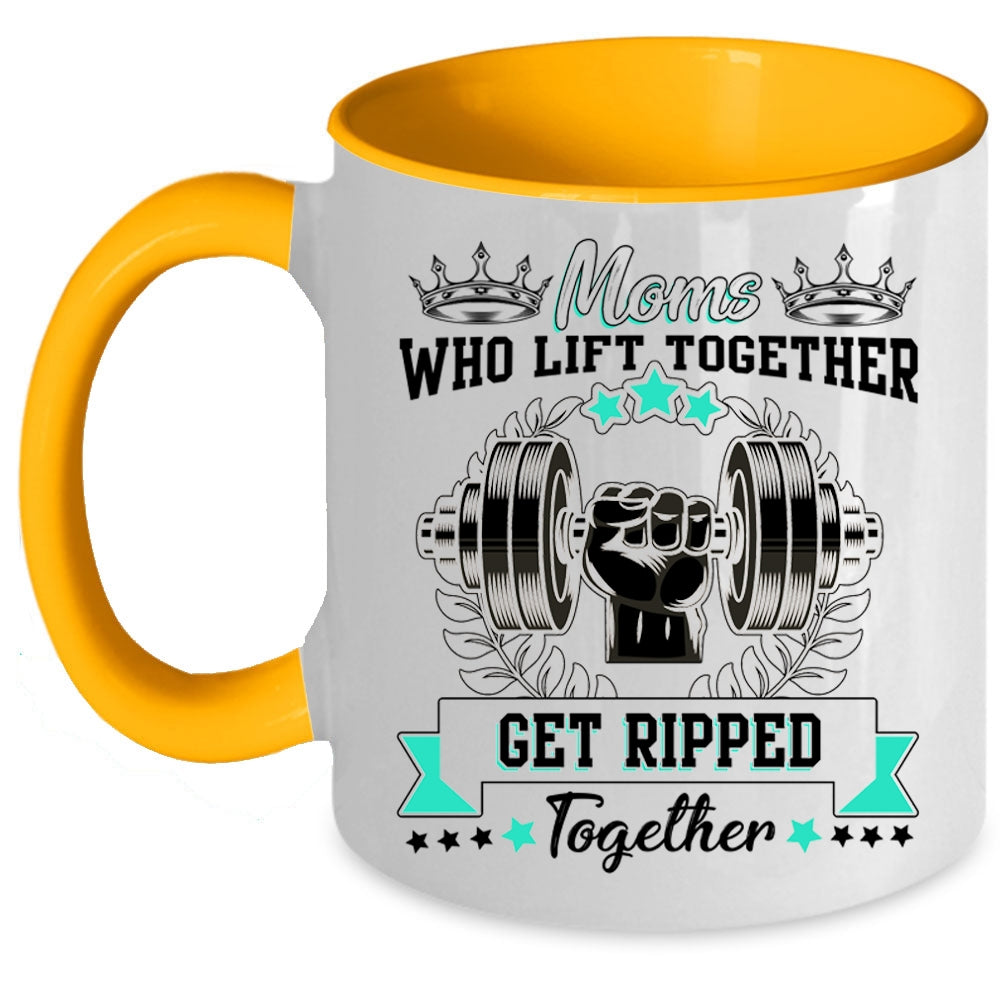 Gift For Mom Coffee Mug, Moms Lift Together Accent Mug