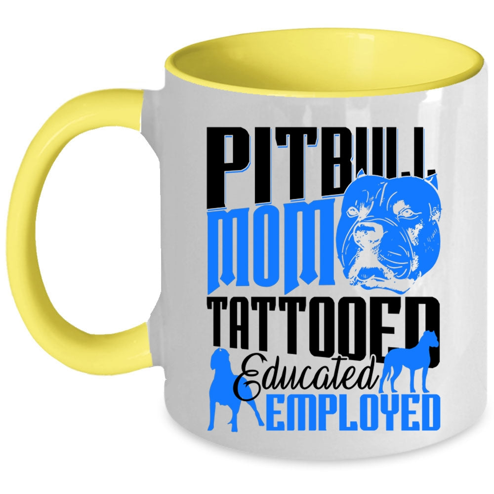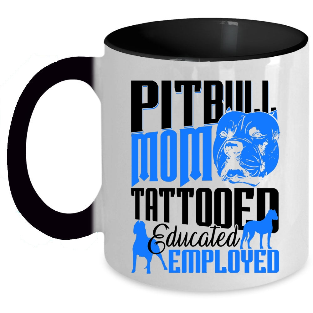 Gift For Mommy Coffee Mug, Pitbull Mom Tattooed Educated Employed Accent Mug