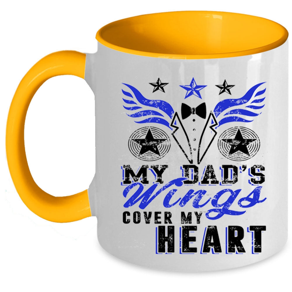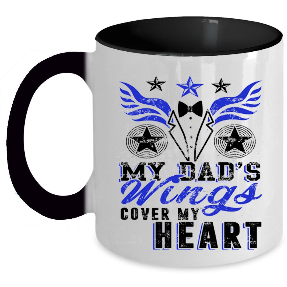 Gift For My Dad Coffee Mug, My Dad's Wings Cover My Heart Accent Mug