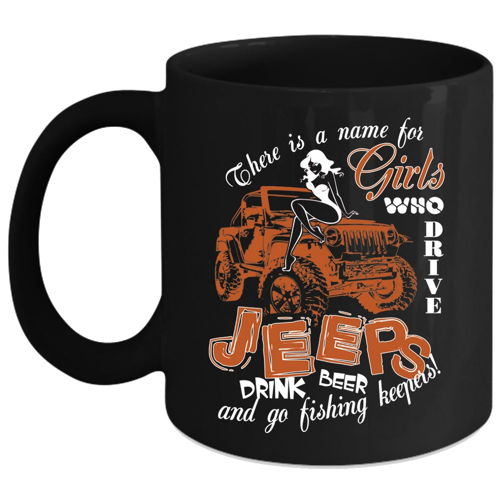 Girls Drive Jeeps And Drink Beer Coffee Mug, Go Fishing Keepers Coffee Cup