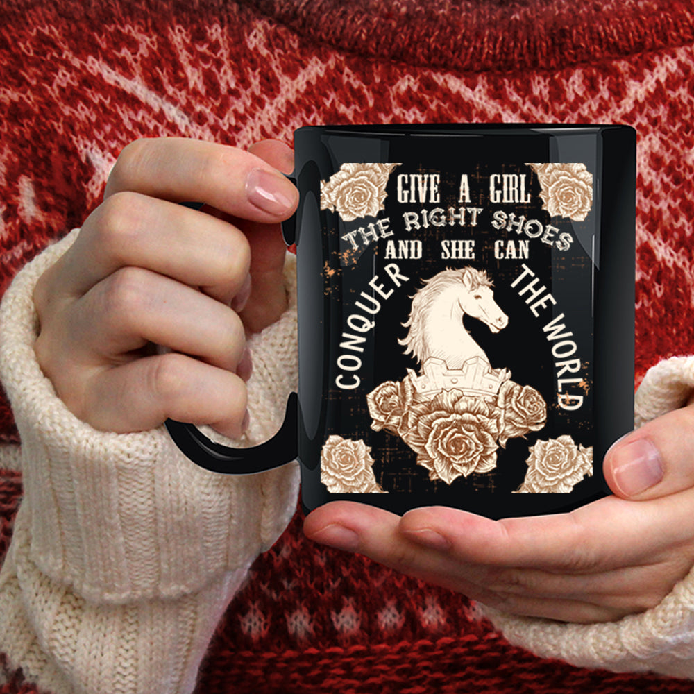 Give A Girl The Right Shoes Coffee Mug, She Can Conquer The World Coffee Cup