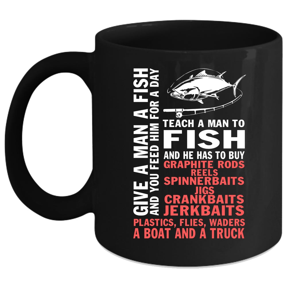 Give A Man A Fish Coffee Mug, Teach A Man To Fish Coffee Cup