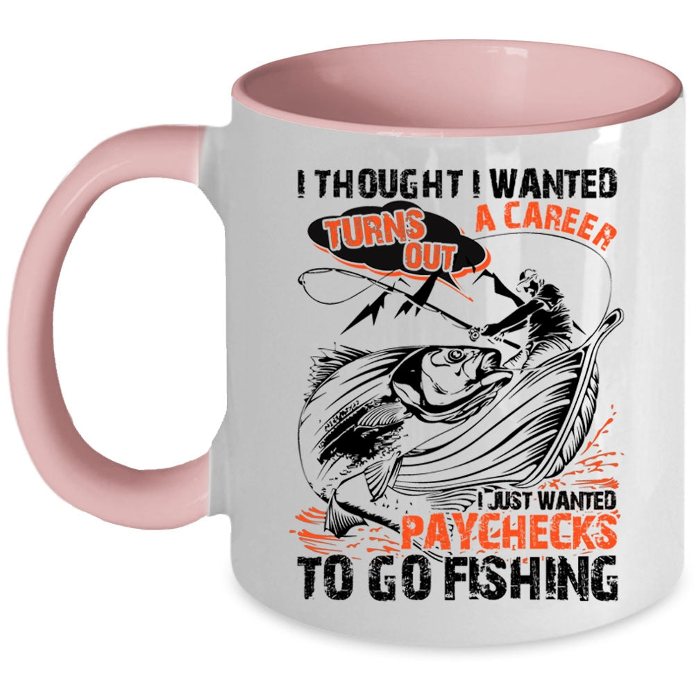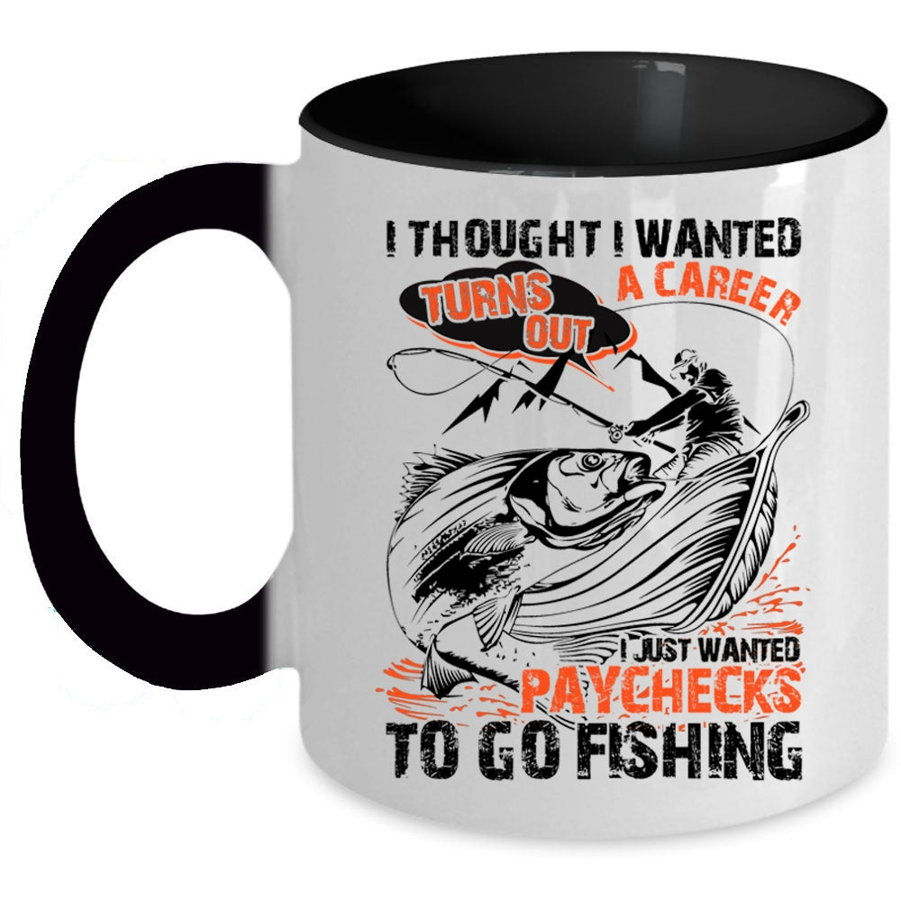 Go Fishing Coffee Mug, I Just Wanted Paychecks To Go Fishing Accent Mug