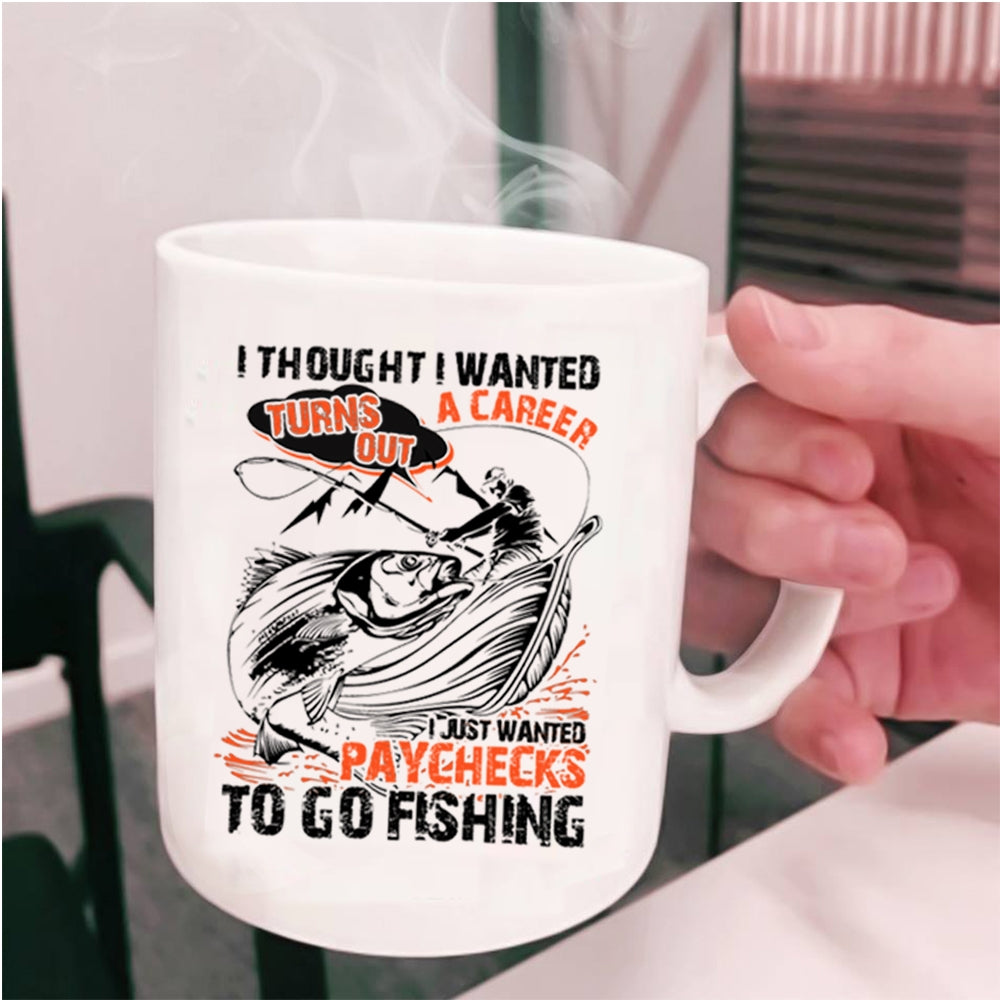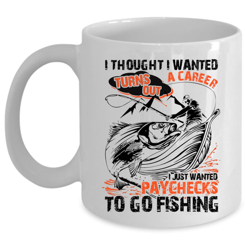 Go Fishing Coffee Mug, I Just Wanted Paychecks To Go Fishing Cup