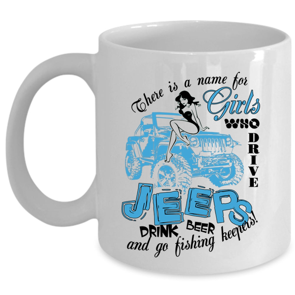 Go Fishing Keepers Coffee Mug, Girls Drive Jeeps And Drink Beer Cup