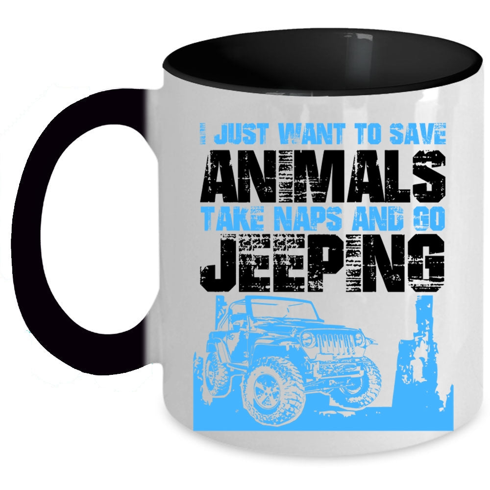Go Jeeping Coffee Mug, I Just Want To Save Animals And Go Jeeping Accent Mug