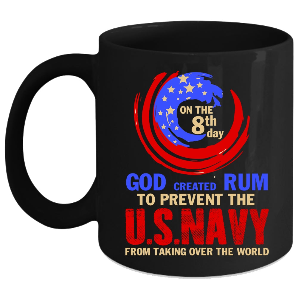 God Created Rum To Prevent The U.S Navy Coffee Mug, Cool U.S Navy Coffee Cup