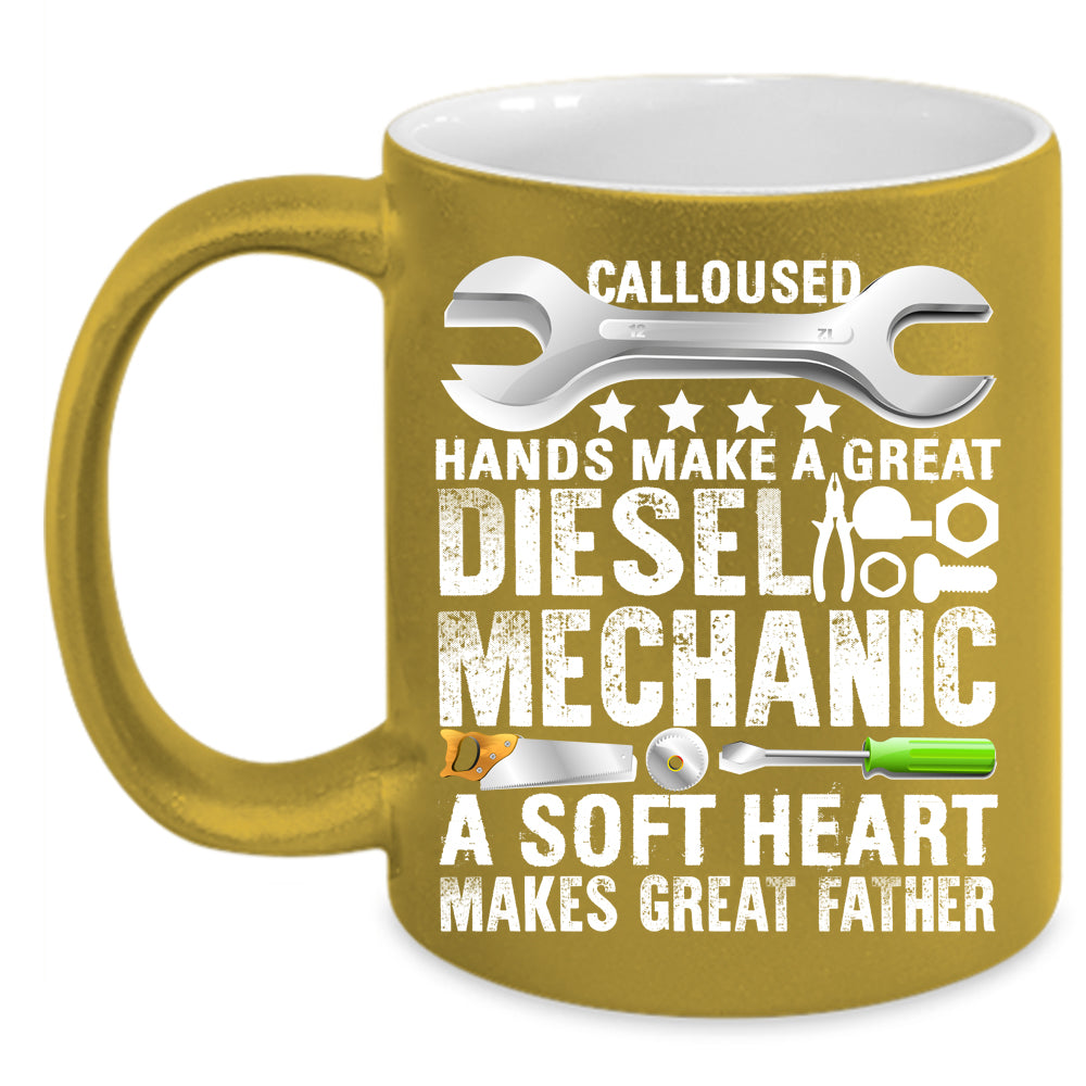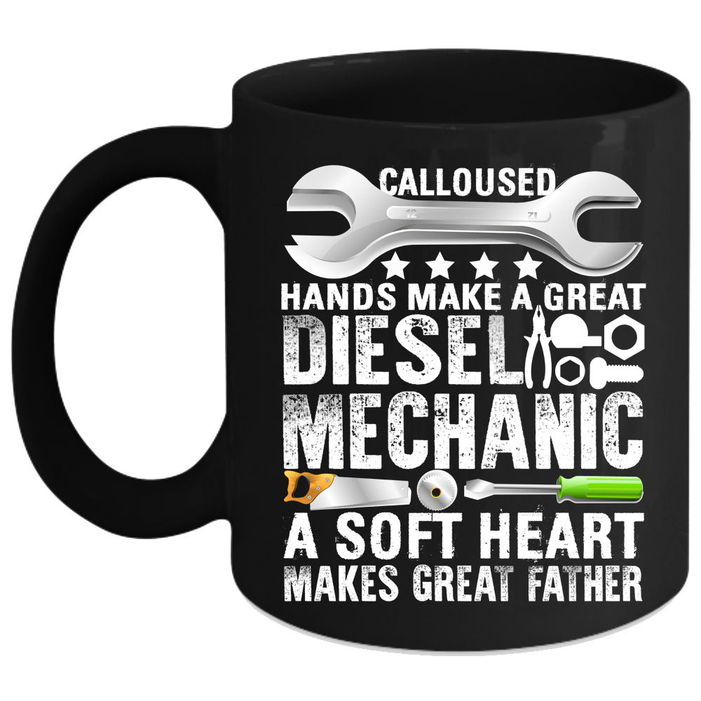 Great Diesel Mechanic Coffee Mug, A Soft Heart Makes Great Father Coffee Cup
