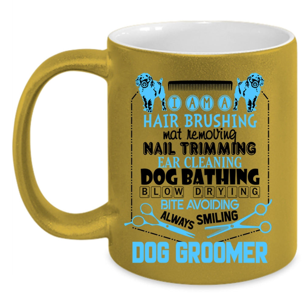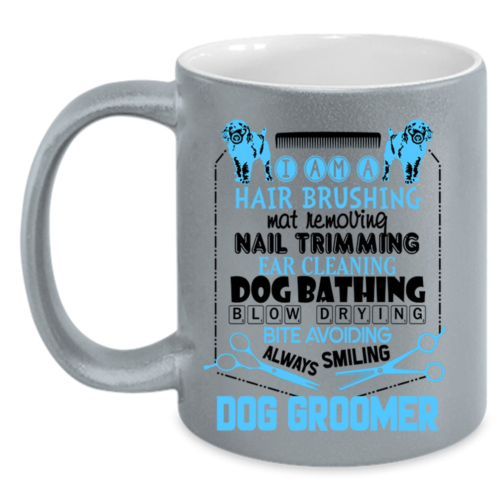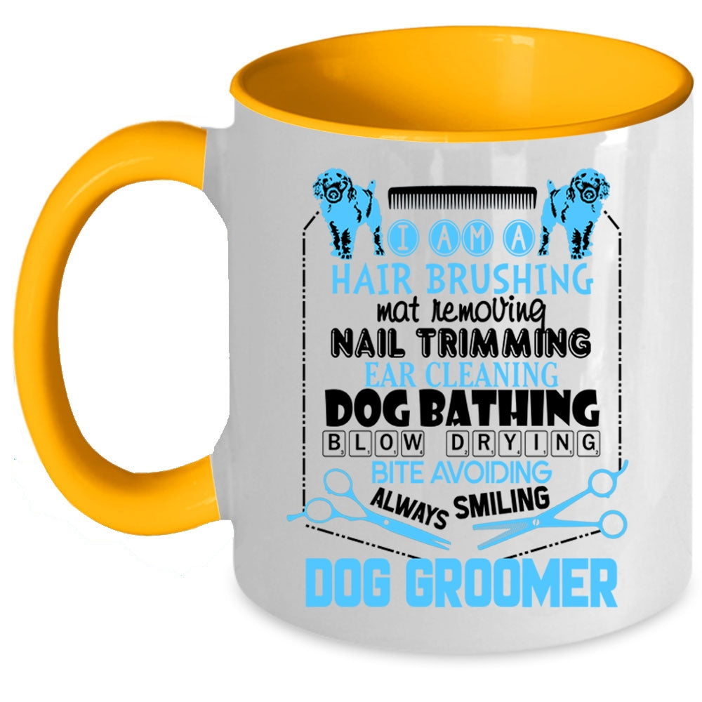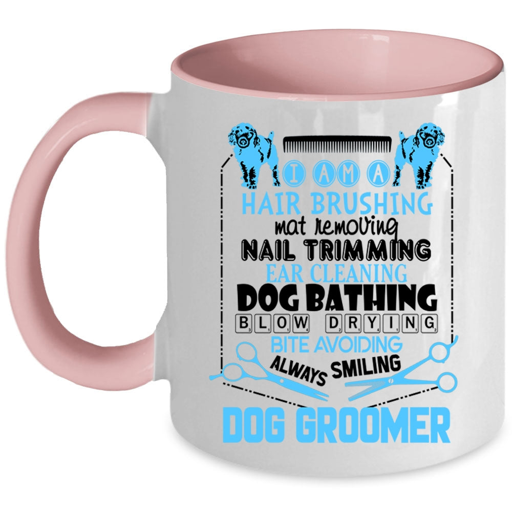 Hair Brushing Dog Bathing Coffee Mug, I Am A Dog Groomer Accent Mug