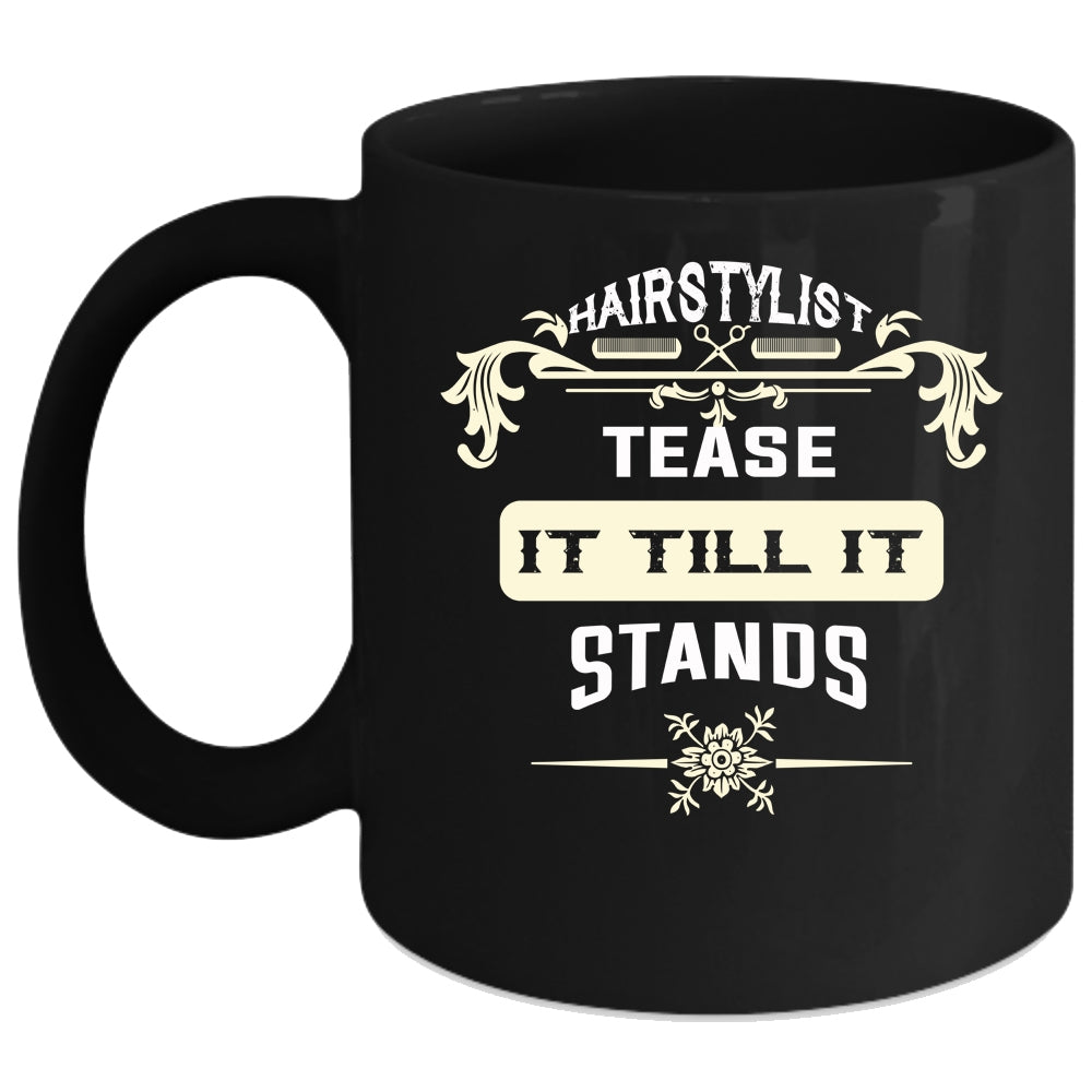Hairstylist Tease It Till It Stands Coffee Mug, Cool Hairstylist Coffee Cup