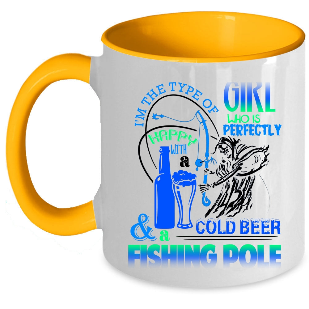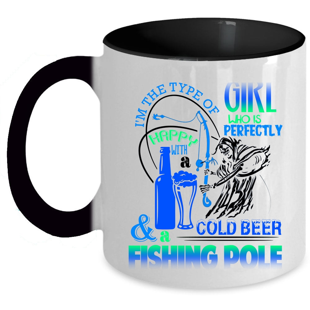 Happy With A Cold Beer And Fishing Pole Coffee Mug, Cool Girls Accent Mug