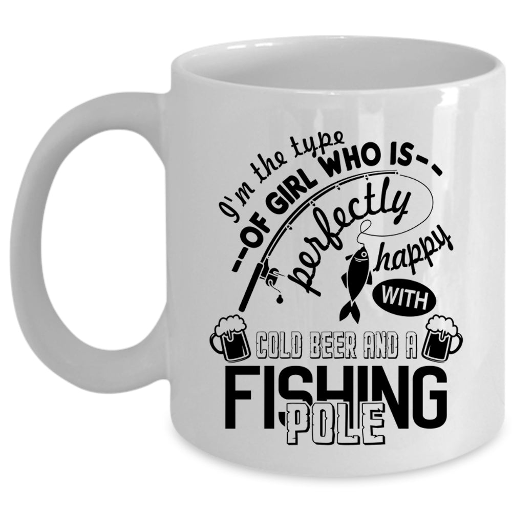 Happy With Cold Beer And A Fishing Pole Coffee Mug, Funny Girl Cup