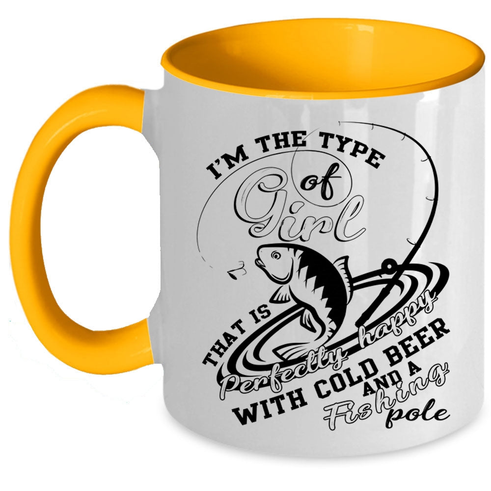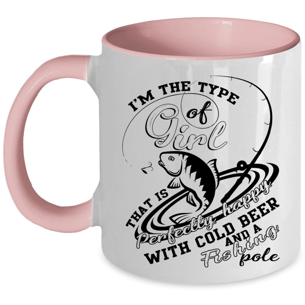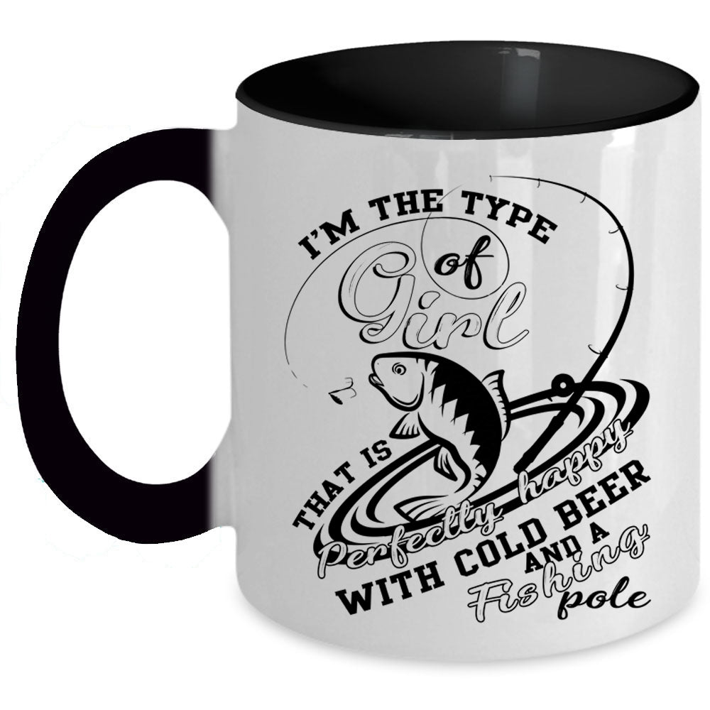 Happy With Cold Beer And Fishing Pole Coffee Mug, Cool Girls Accent Mug
