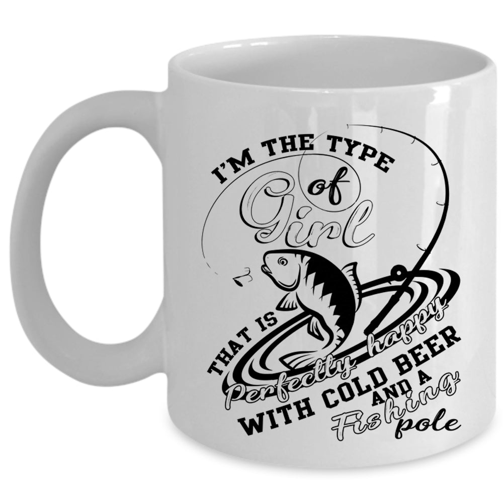 Happy With Cold Beer And Fishing Pole Coffee Mug, Cool Girls Cup