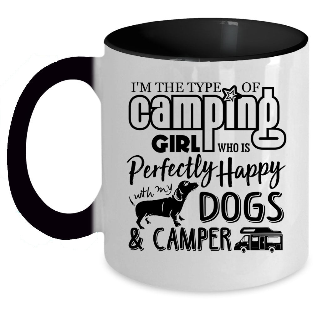 Happy With My Dogs And Camper Coffee Mug, Camping Girl Accent Mug