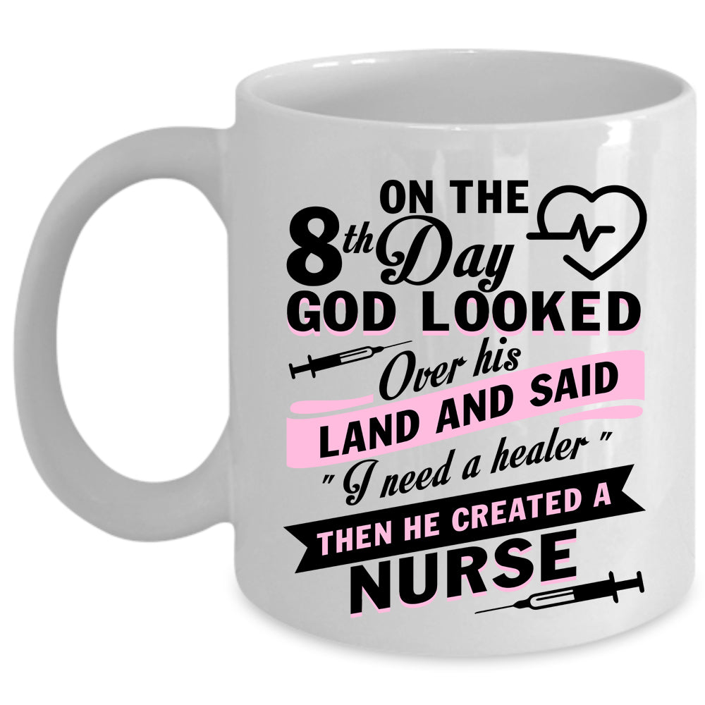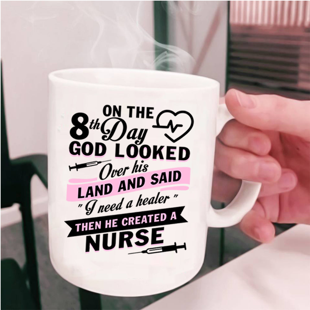 He Created A Nurse Coffee Mug, 8th Day God Looked Over His Land Cup