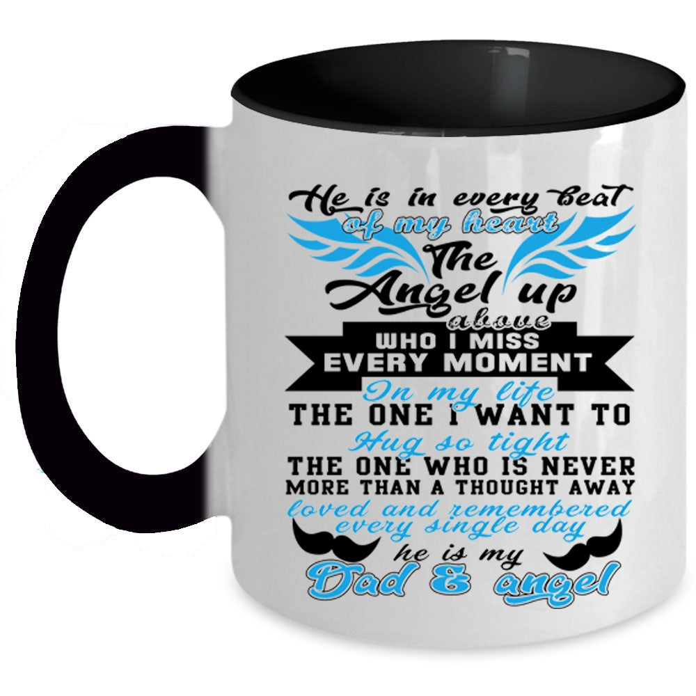 He Is My Dad And Angel Coffee Mug, He Is In Every Beat Of My Heart Accent Mug