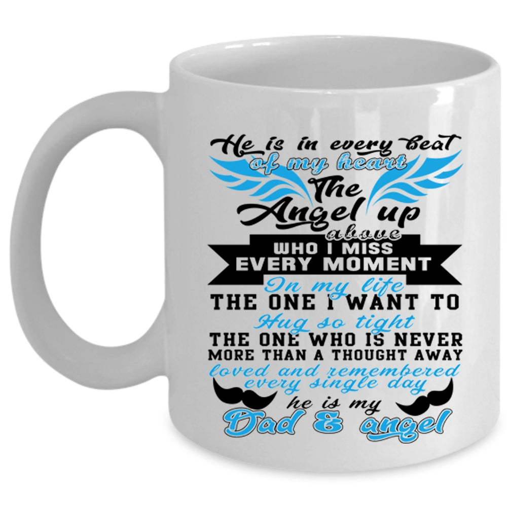 He Is My Dad And Angel Coffee Mug, He Is In Every Beat Of My Heart Cup