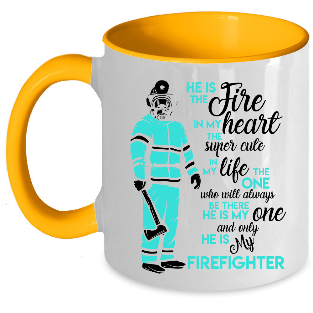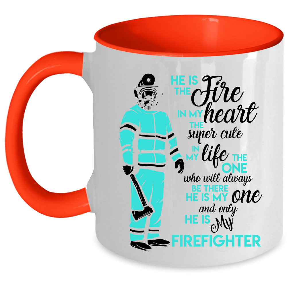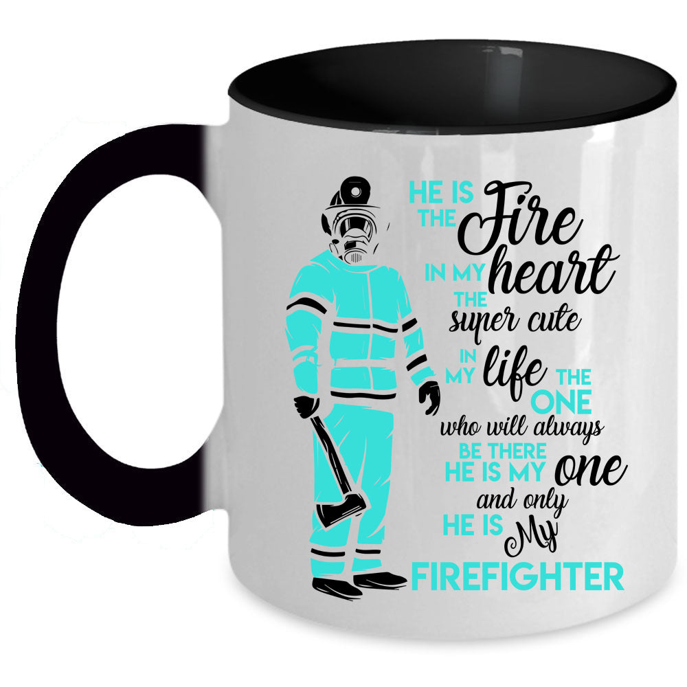 He Is My Firefighter Coffee Mug, He Is The Fire In My Heart Accent Mug