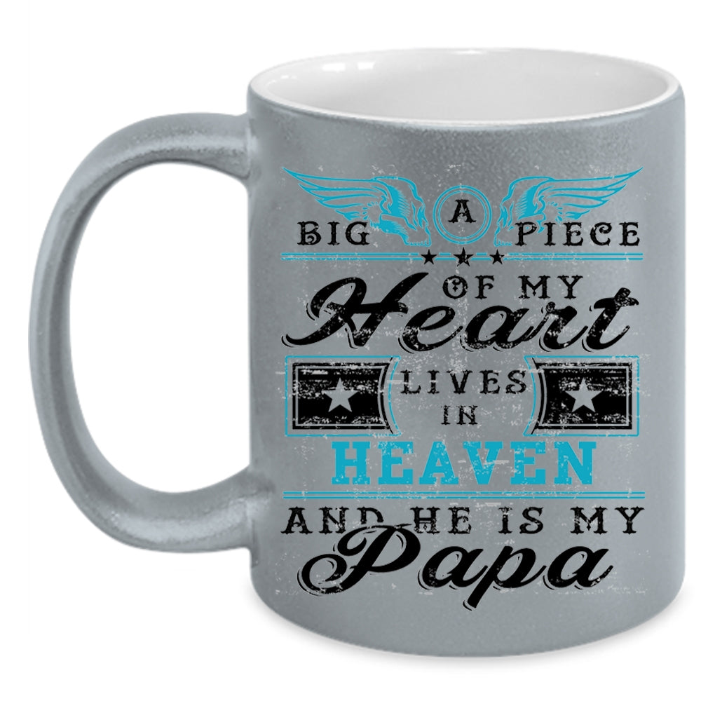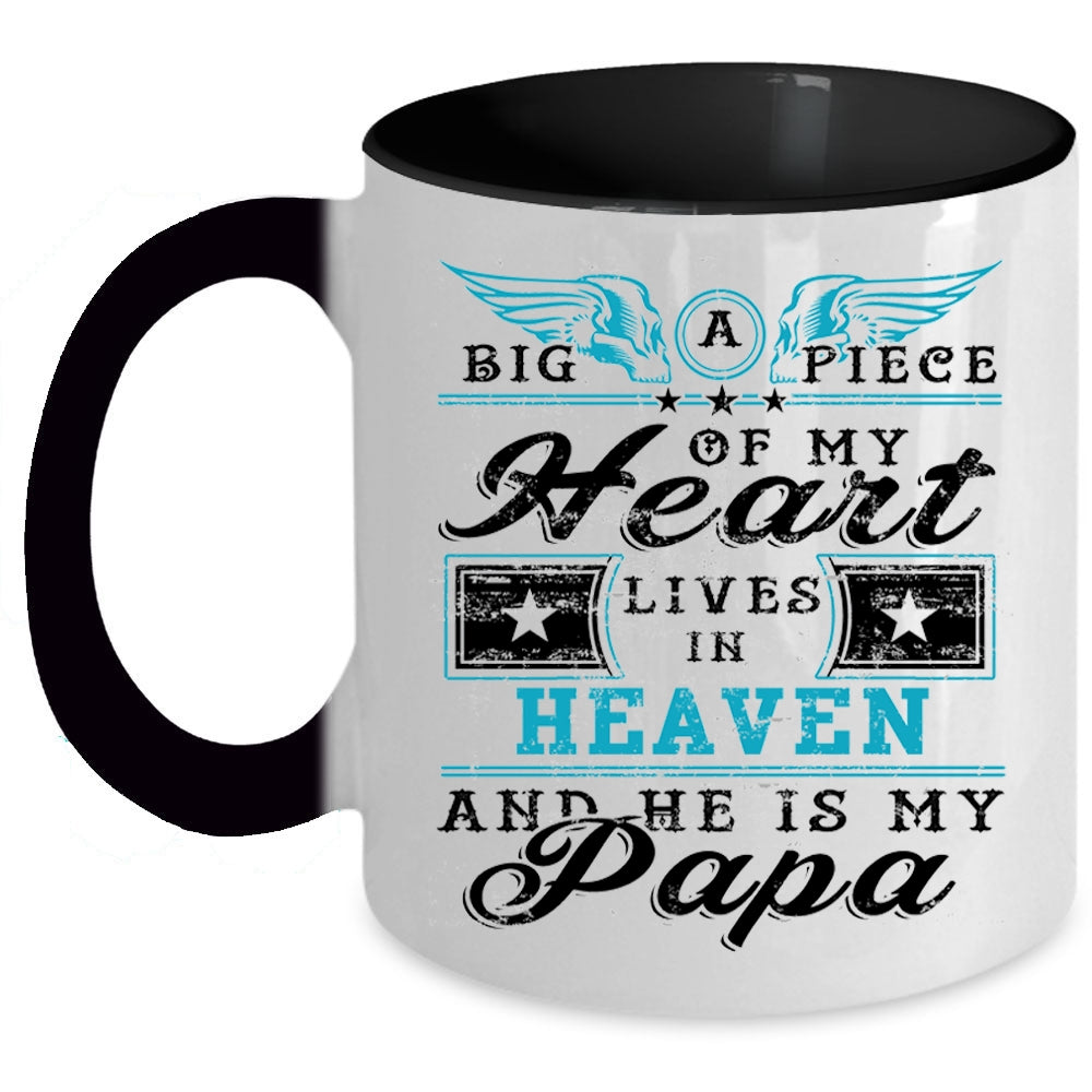 He Is My Papa Coffee Mug, Big A Piece Of My Heart Lives In Heaven Accent Mug