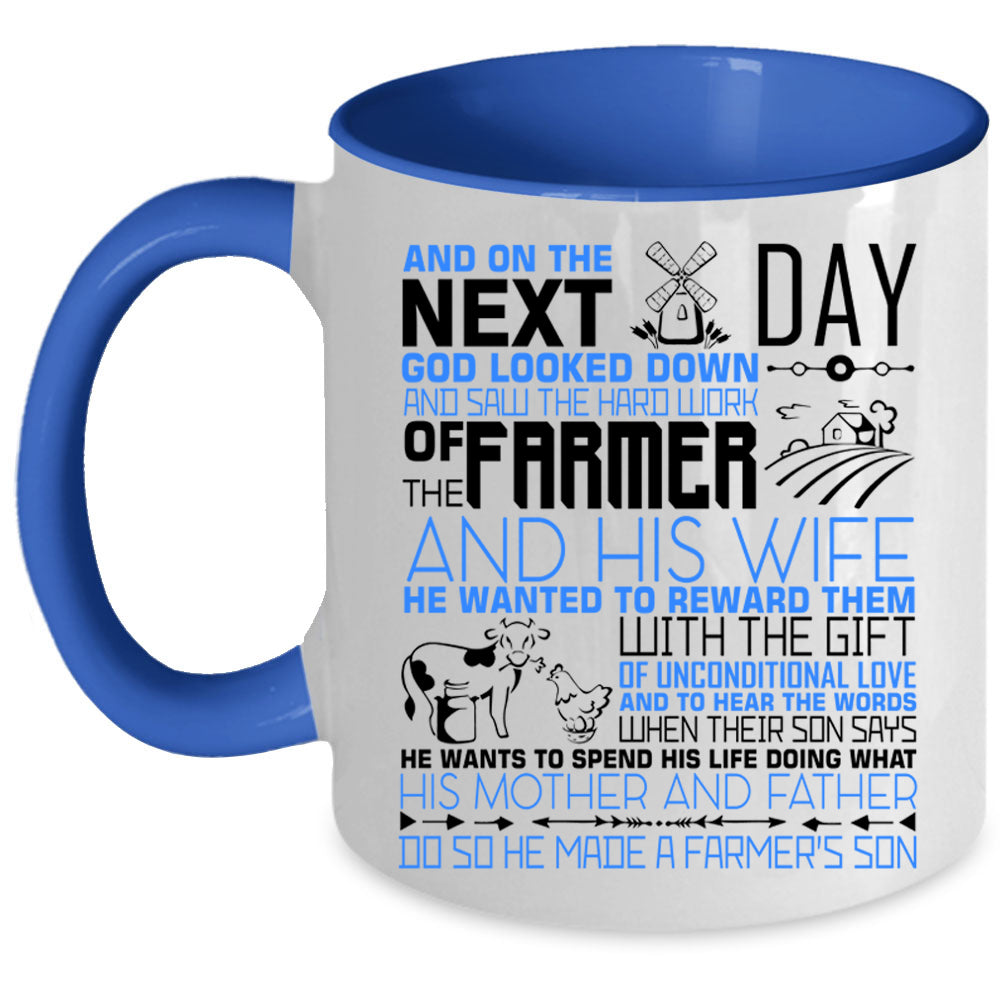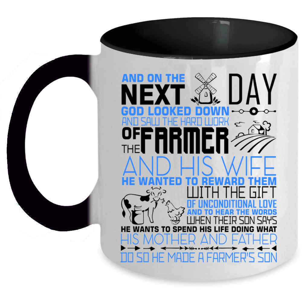 He Made A Farmer's Son Coffee Mug, His Mother And Father Accent Mug