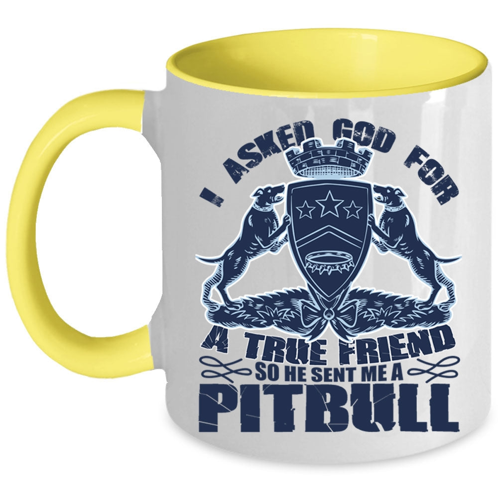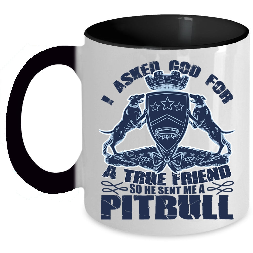 He Sent Me A Pitbull Coffee Mug, I Asked God For A True Friend Accent Mug
