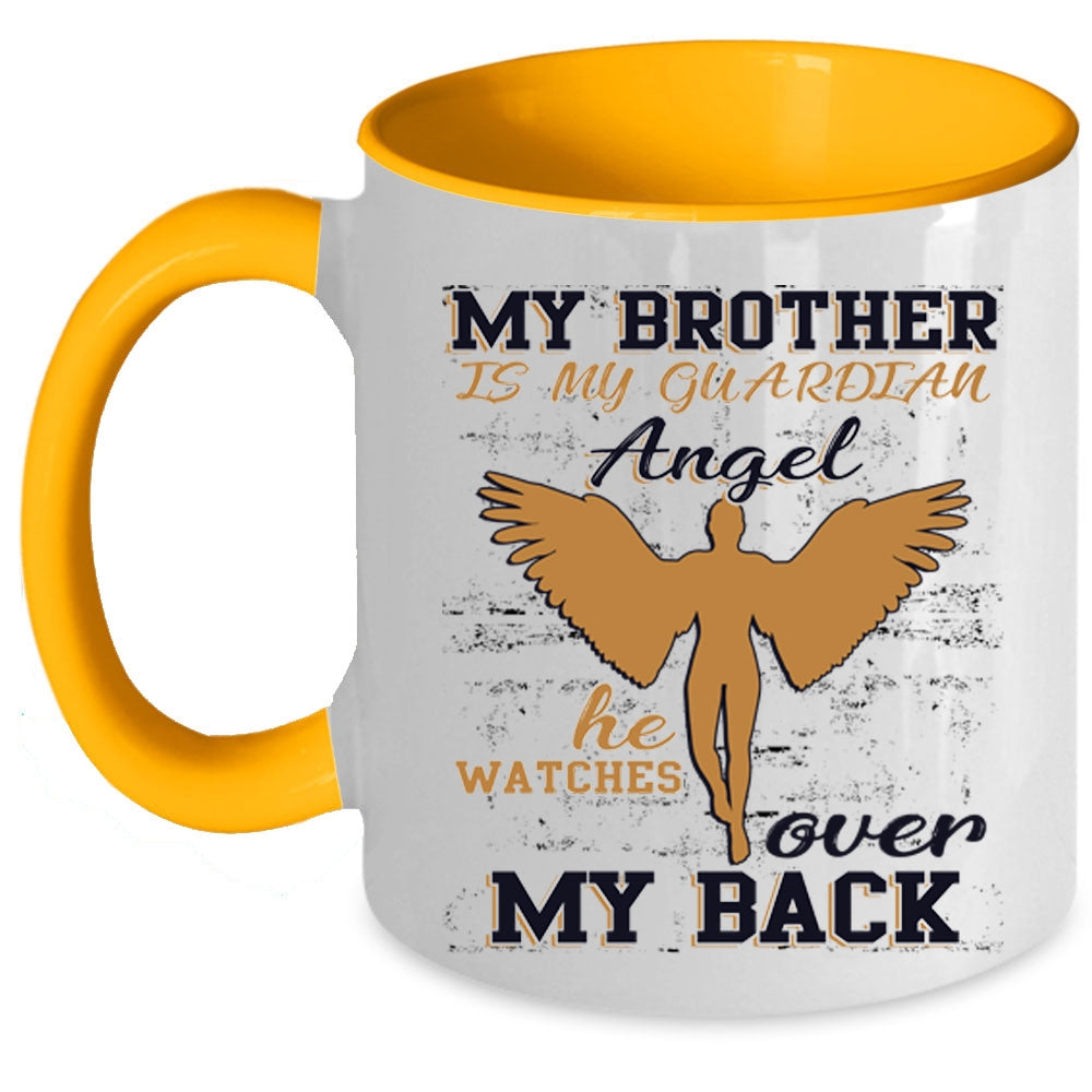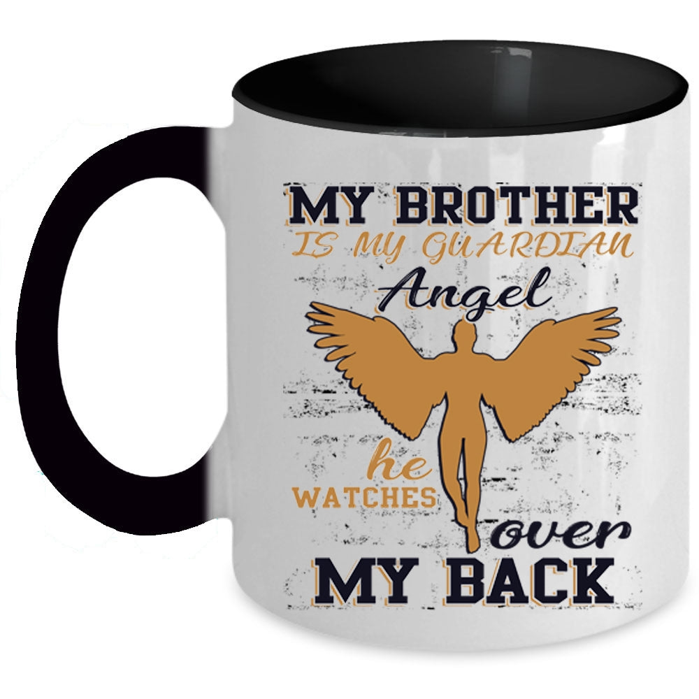 He Watches Over My Back Coffee Mug, My Brother Is My Guardian Angel Accent Mug