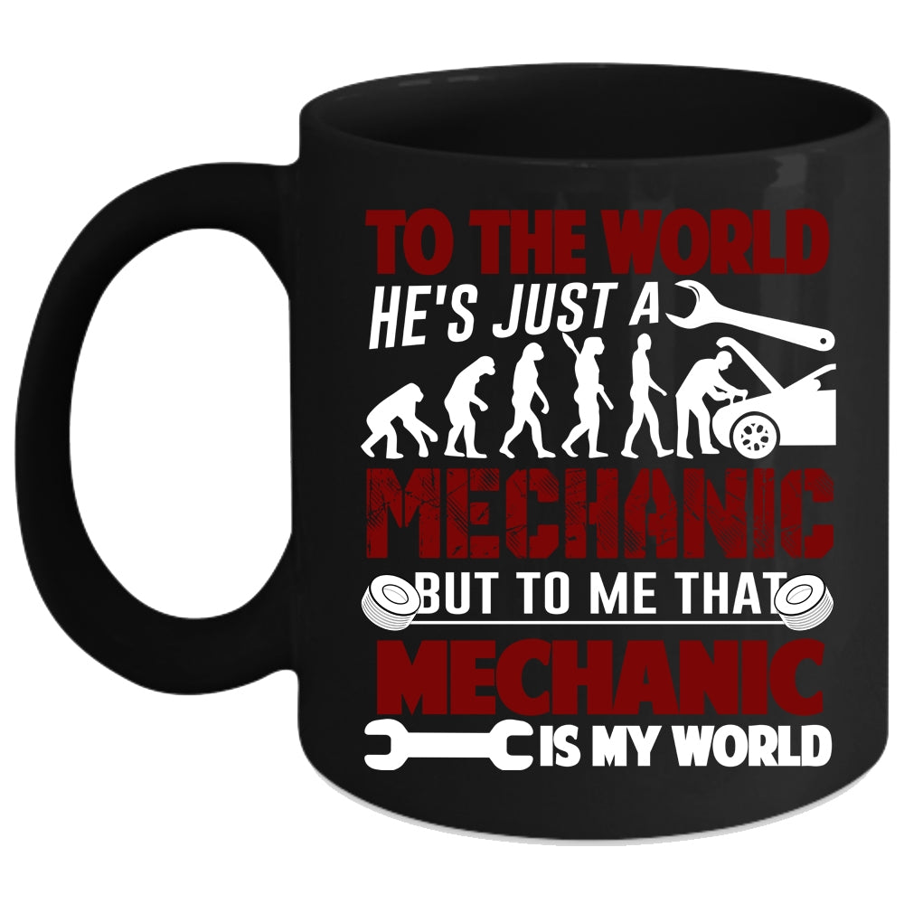 He's Just A Mechanic Coffee Mug, To Me That Mechanic Is My World Coffee Cup