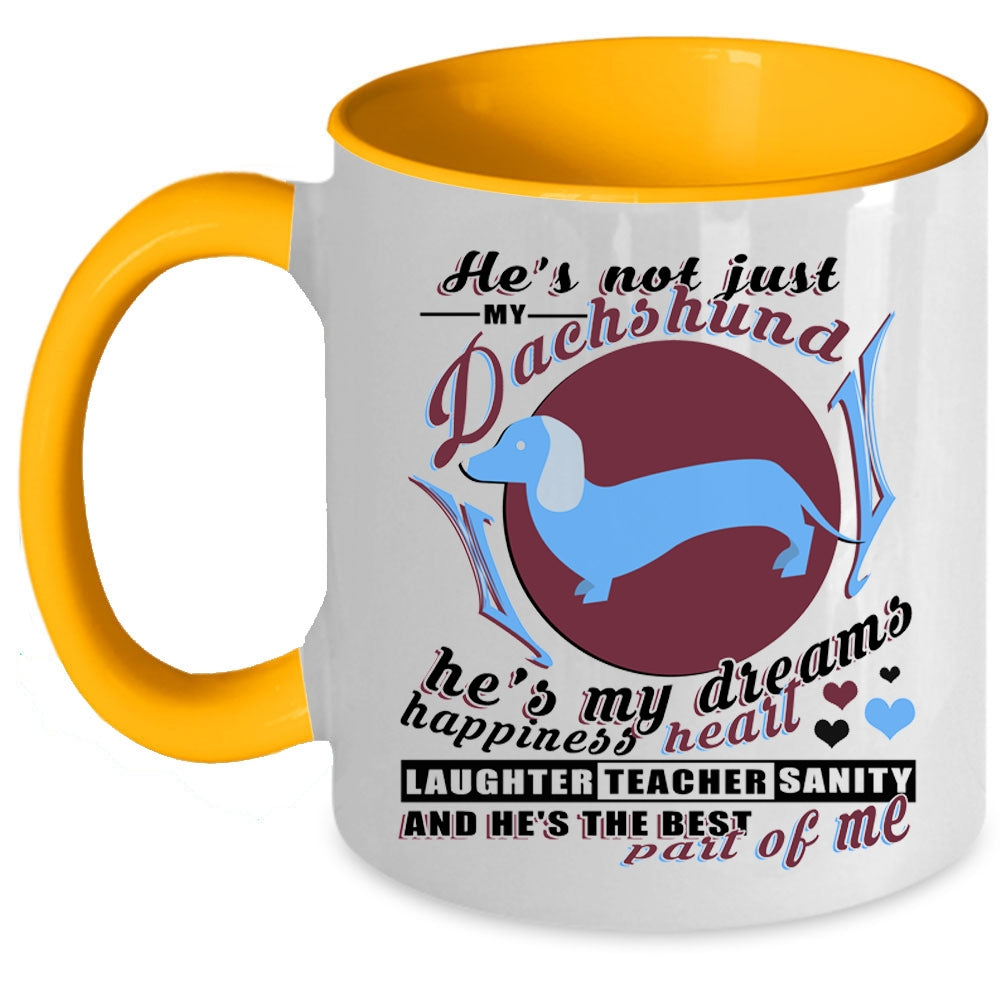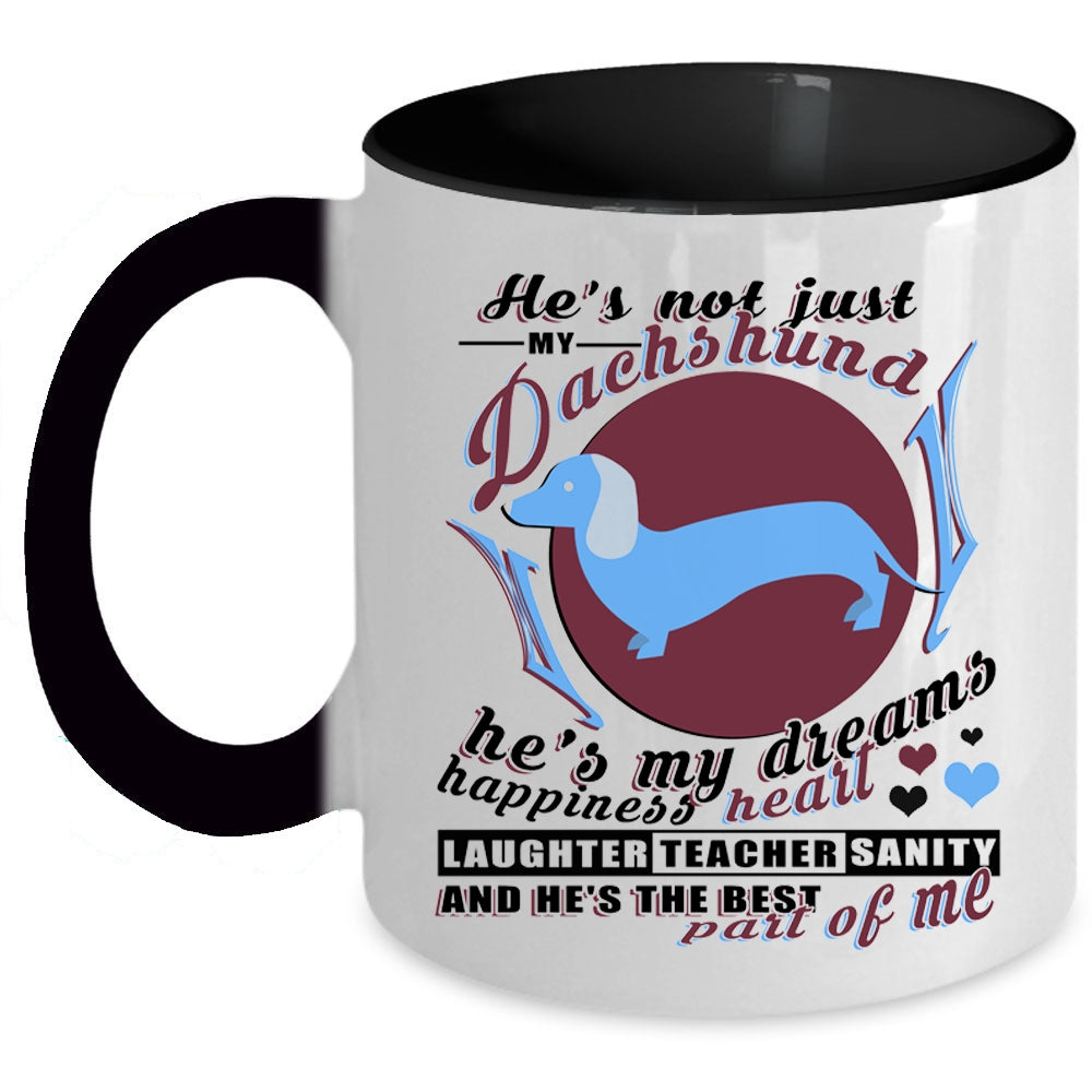 He's My Dreams Happiness Heart Coffee Mug, He's Not Just My Dachshund Accent Mug